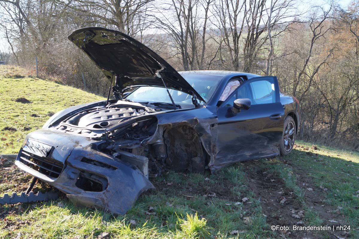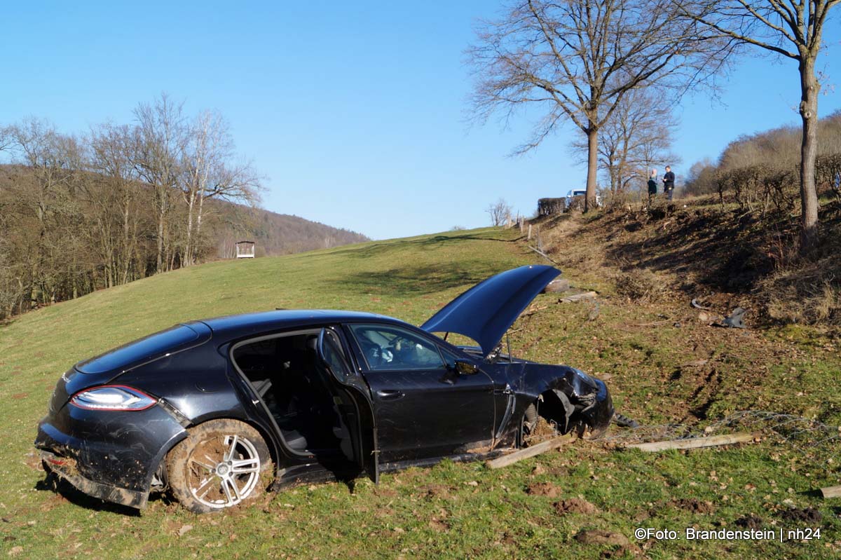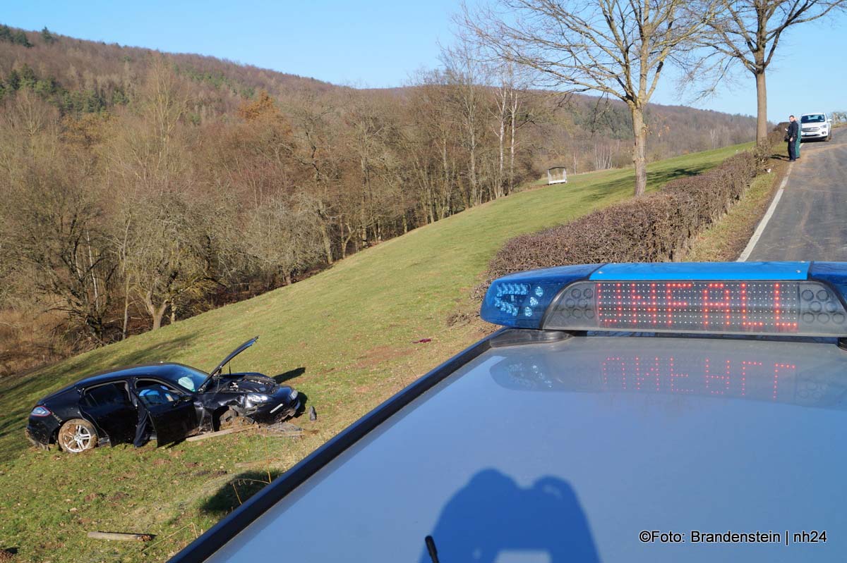 KÖRLE. Bei einem Unfall auf der Landesstraße zwischen Eiterhagen und Ober-Empfershausen (Schwalm-Eder-Kreis) entstand am Sonntagnachmittag ein Schaden in Höhe von mindestens 100.000 Euro an einem Porsche Panamera. Der 20 Jahre alte Fahrer wurde verletzt und nach seiner Erstversorgung vom Rettungsdienst in ein Kasseler Krankenhaus gebracht.