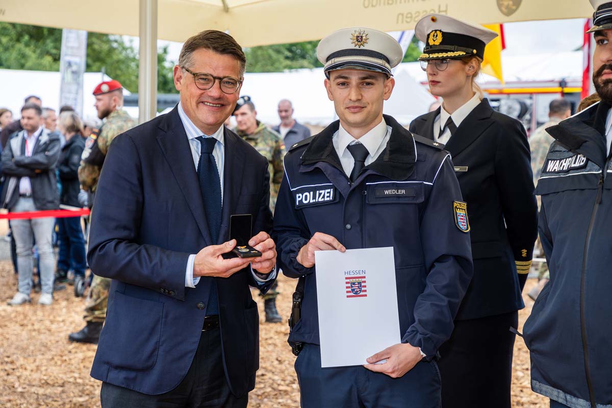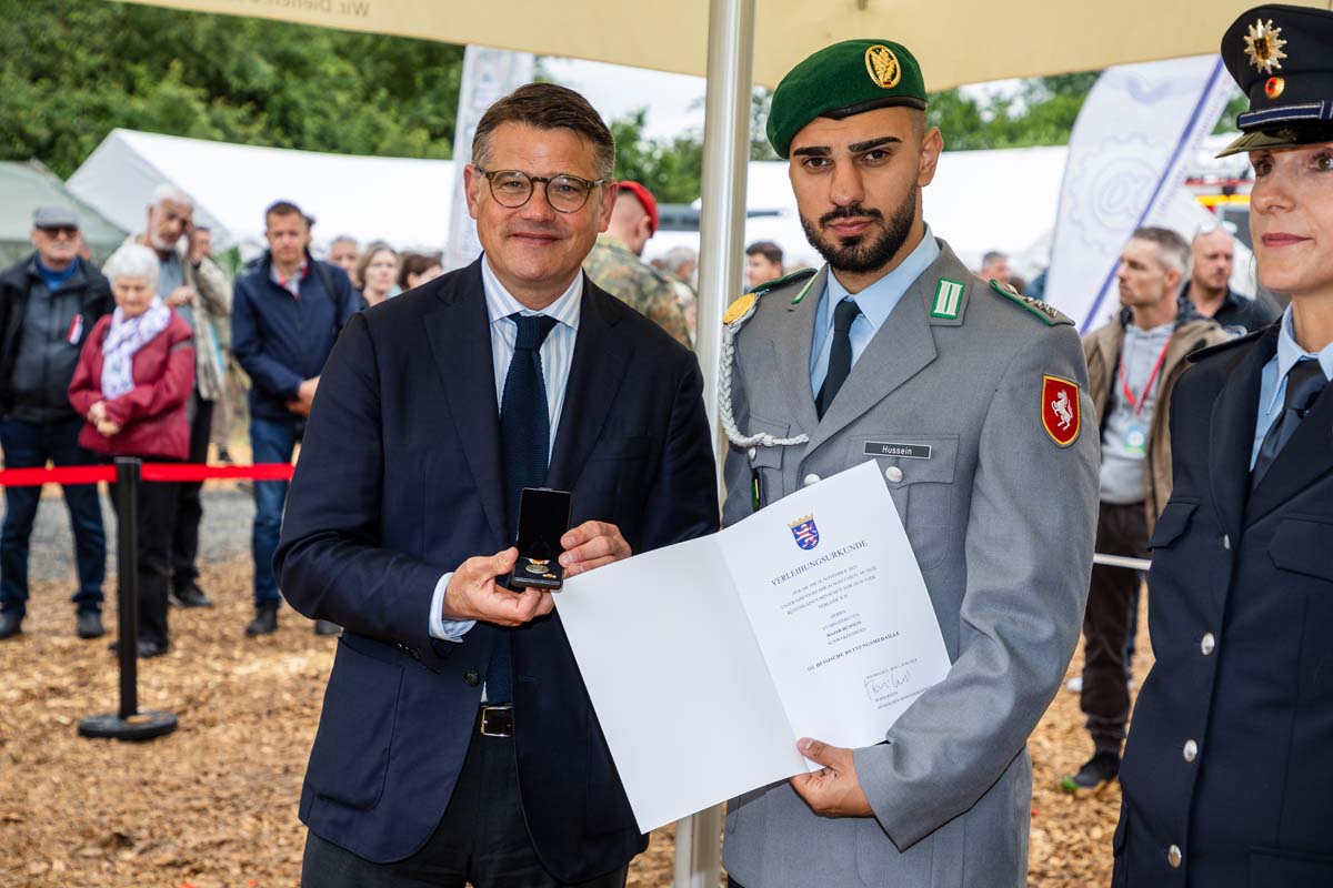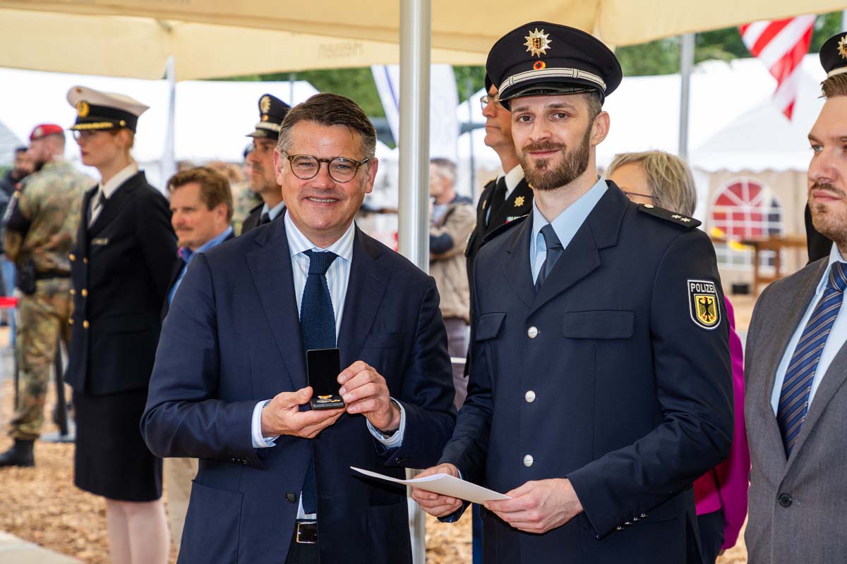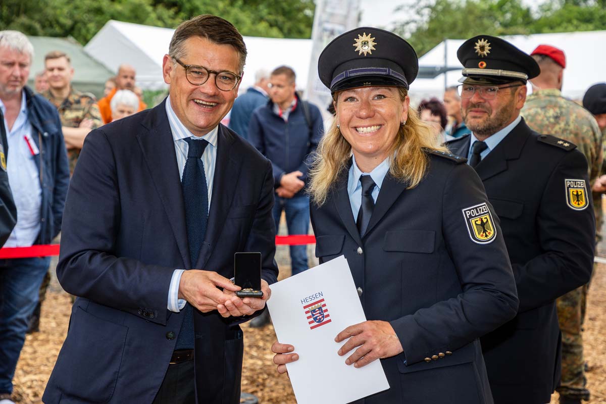 FRITZLAR. Ministerpräsident Boris Rhein hat am Samstag Angehörige der Bundeswehr, der Bundespolizei, der hessischen Polizei, der Justiz und der US-Armee auf dem Hessentag in Fritzlar für ihr besonderes Engagement geehrt.
