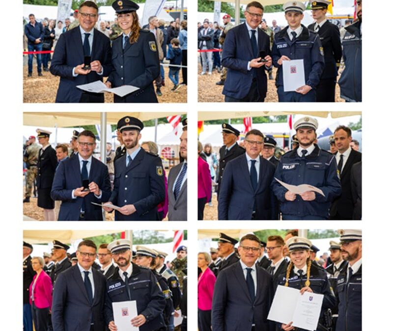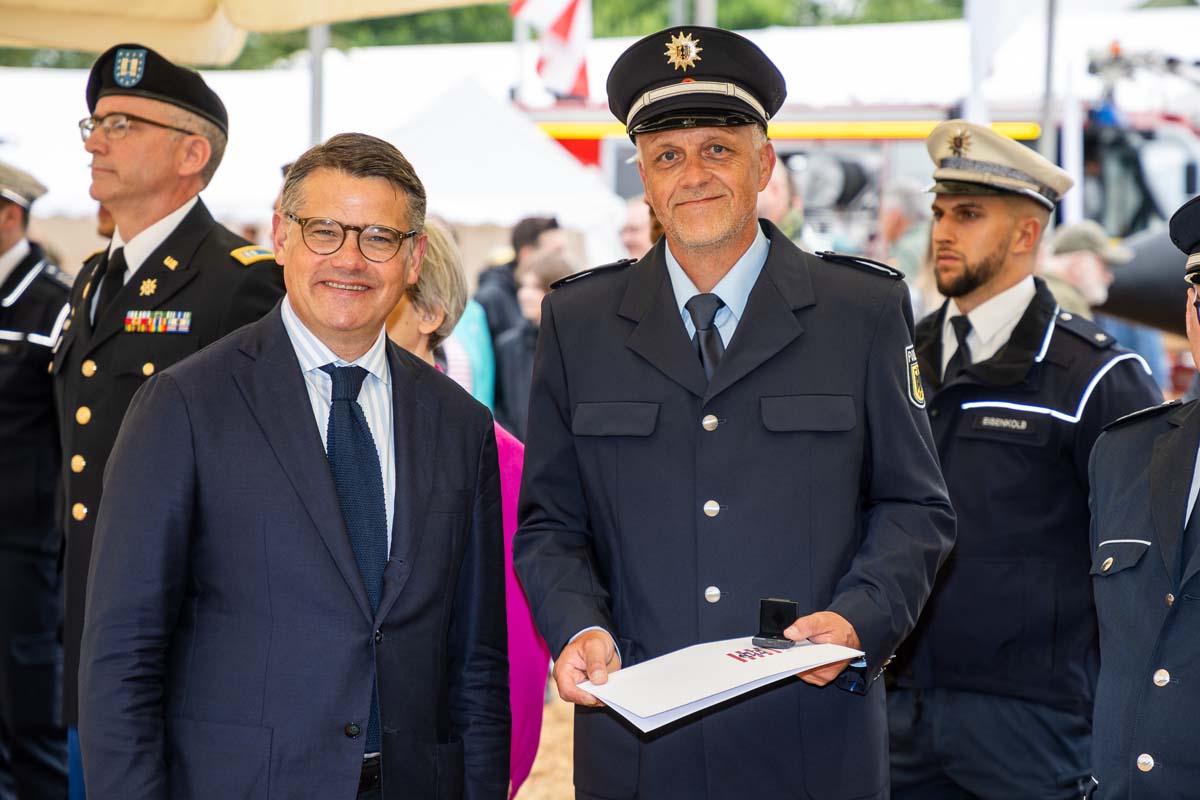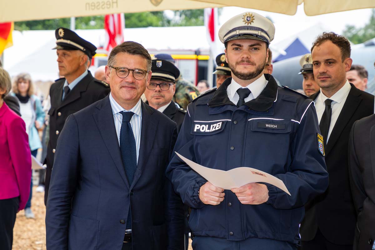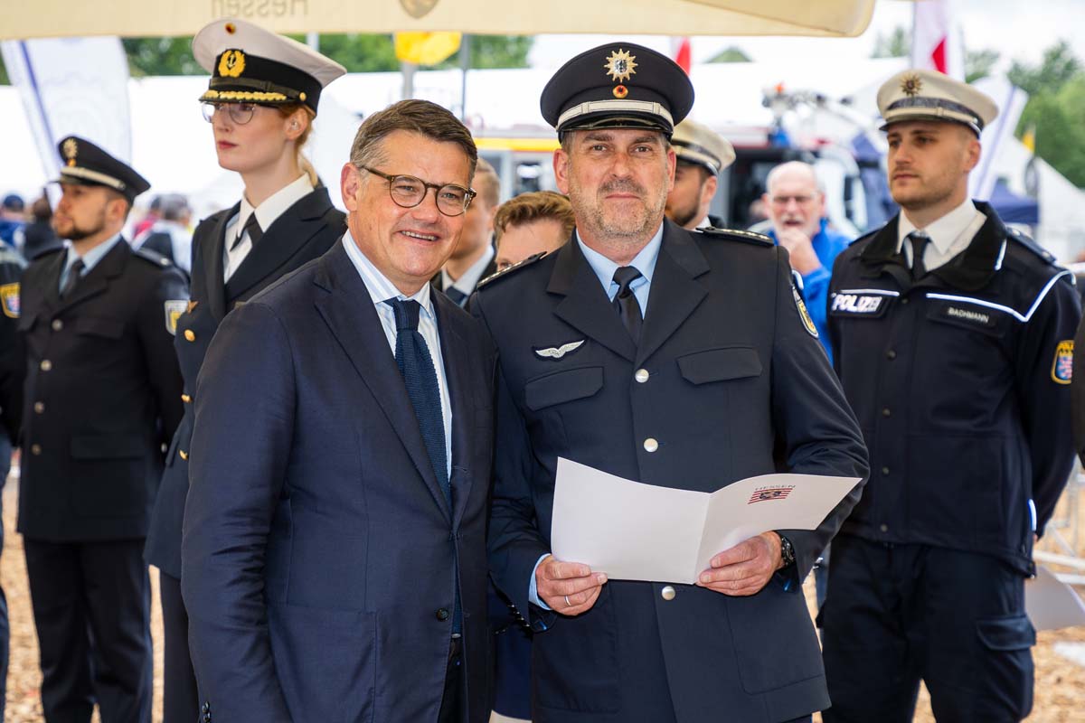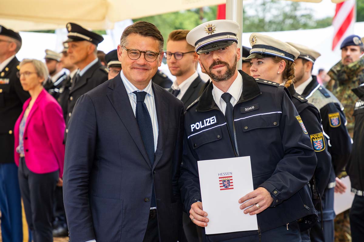 FRITZLAR. Ministerpräsident Boris Rhein hat am Samstag Angehörige der Bundeswehr, der Bundespolizei, der hessischen Polizei, der Justiz und der US-Armee auf dem Hessentag in Fritzlar für ihr besonderes Engagement geehrt.