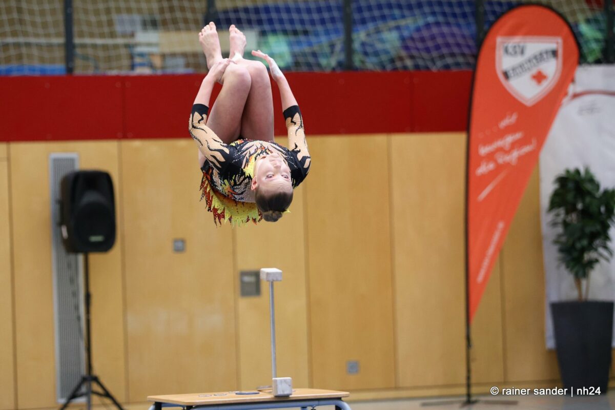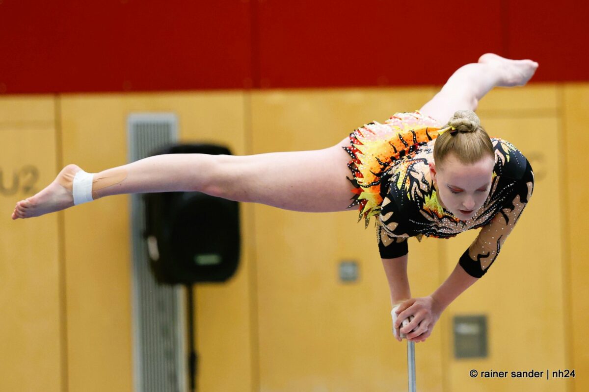 Vor allem die nordhessischen Athleten waren in der Rundsporthalle beim dritten Wettkampftag der Hessen- und Landesliga erfolgreich. In der Hessenliga landete das A-Klasse-Team der SVH Kassel knapp vor dem ausrichtenden KSV Baunatal. Größten Anteil am zweiten Platz der Baunataler hatten Emilia Braham und Liana Bruch, die mit 27,610 Punkten die Tageshöchstwertung erturnten. Auch im vorangegangenen Wettkampf erreichten sie die höchste Tageswertung. Die Baunataler Fynn Brinken und Lara Miller turnten eine insgesamt gute Übung unter den Augen des Ersten Stadtrates Daniel Jung, mussten aber durch einen Abgang recht viele Punkte lassen.