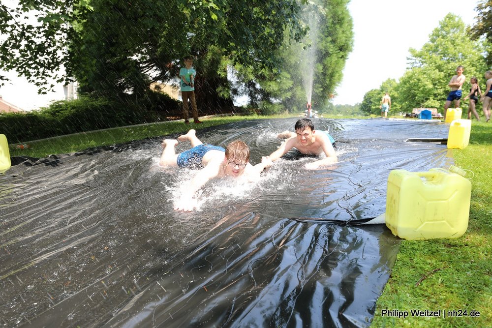 KIRTORF. Coole Aktion bei hochsommerlichen Temperaturen: Die Kirtorfer Jugendfeuerwehr hat am Samstag eine 30 Meter lange Wasserrutsche gebaut. „Bei diesem Wetter steht die feuerwehrtechnische Ausbildung nicht an erster Stelle“, scherzten die Jugendfeuerwehrwarte zum Hintergrund.