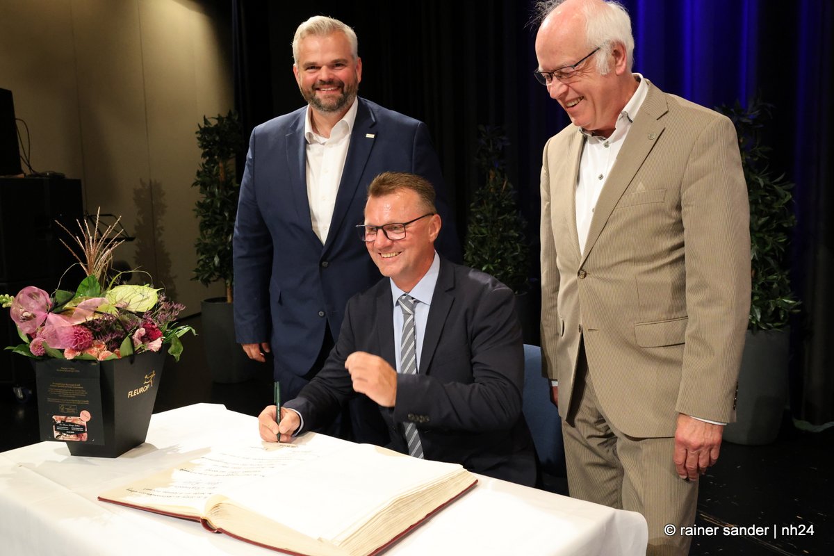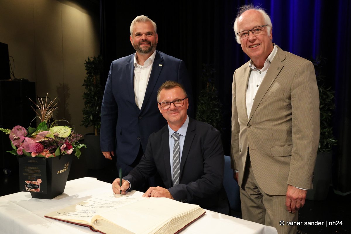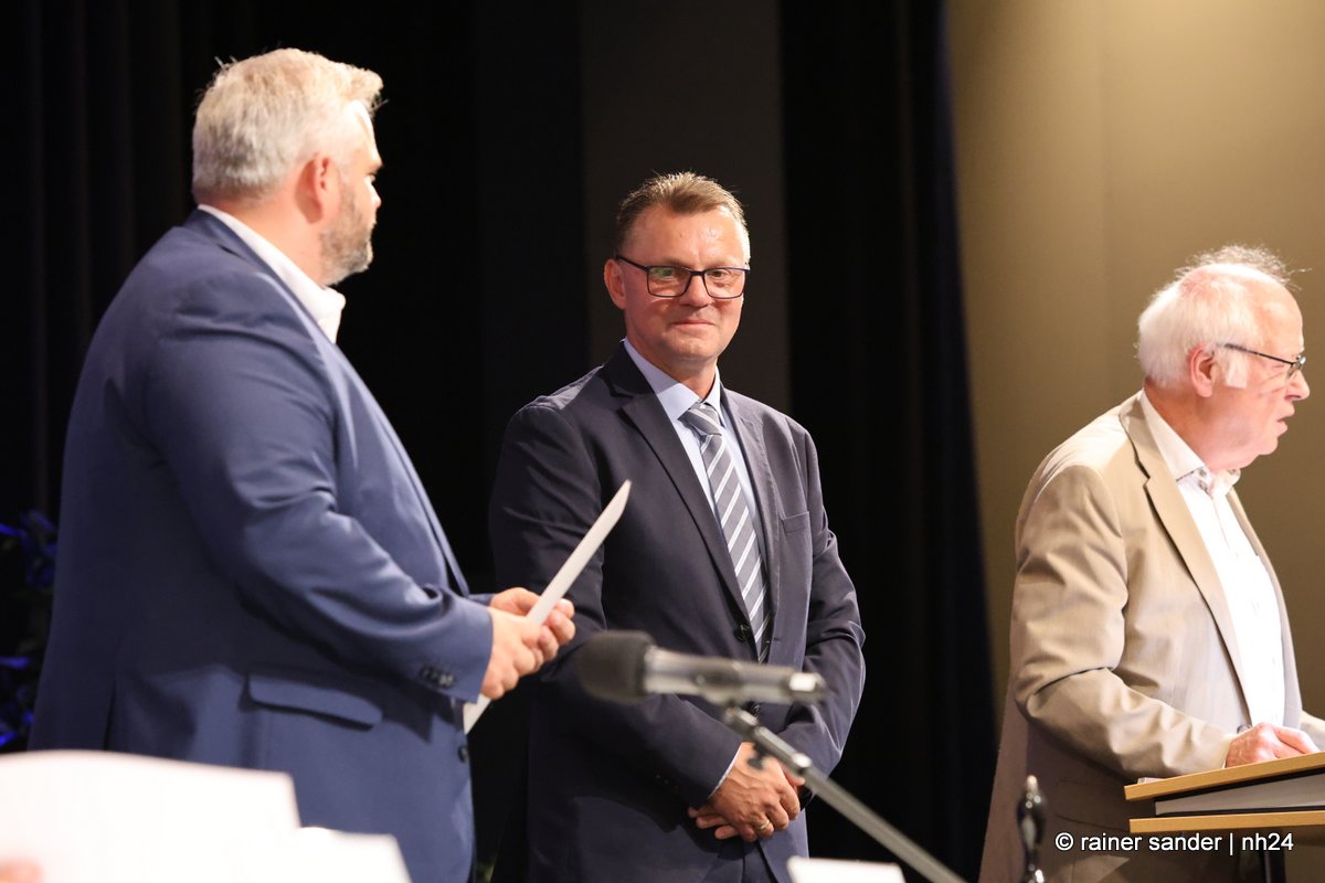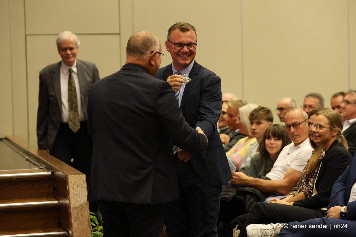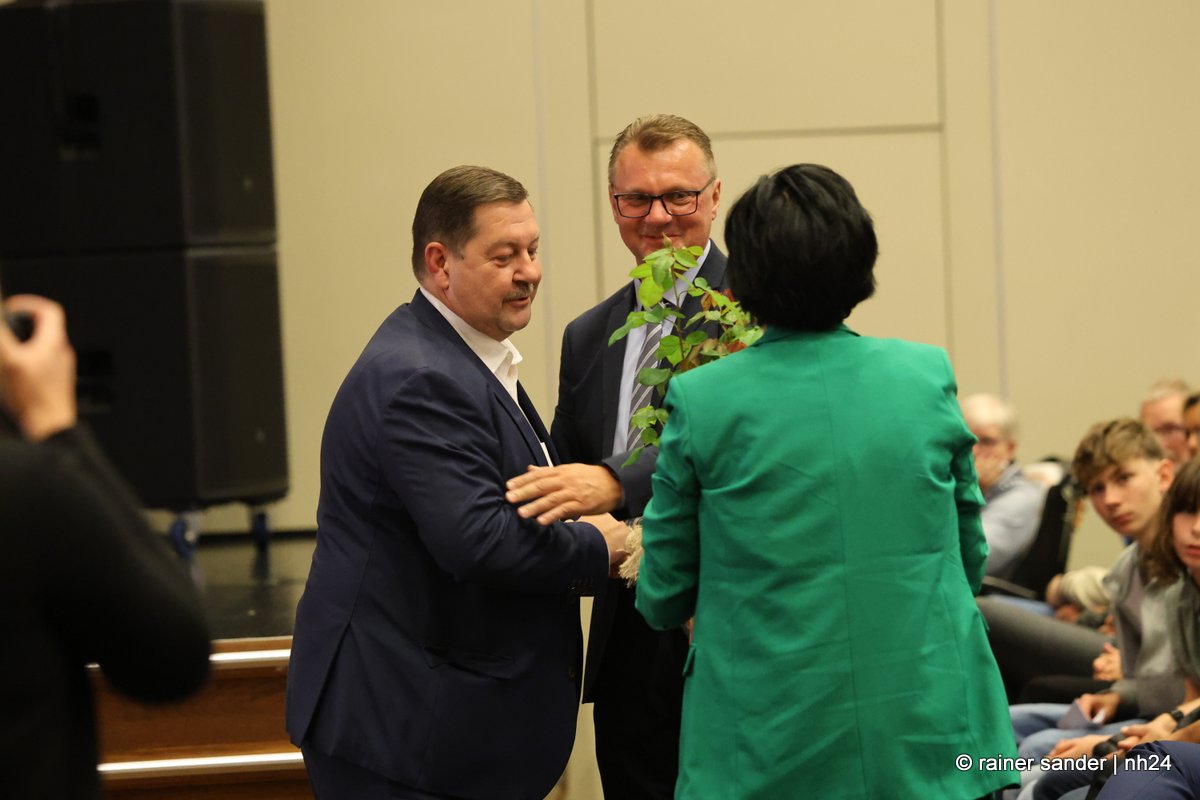 Der zweite OB am gestrigen Abend kam aus Baunatals Partnerstadt Sangerhausen (Sachsen-Anhalt). Auch Torsten Schweiger ist neu im Amt. Seit sieben Wochen. Mit neuer Aufgabe entstehe nicht nur ein Amt, sondern auch Verantwortung. Man müsse miteinander reden und gemeinsam gestalten. Der Fokus läge auf Beständigkeit, aber es bedarf offener Dialoge. Die Ideenbox von Richter gefällt ihm: „Mit Ihrer Wahl beginnt neues Kapitel. Sie bringen neue Ideen und Entschlossenheit mit. Glückauf und Gottes Segen!“