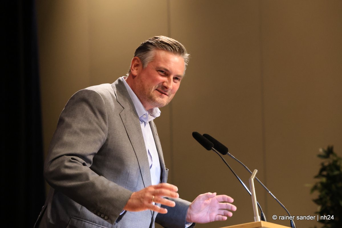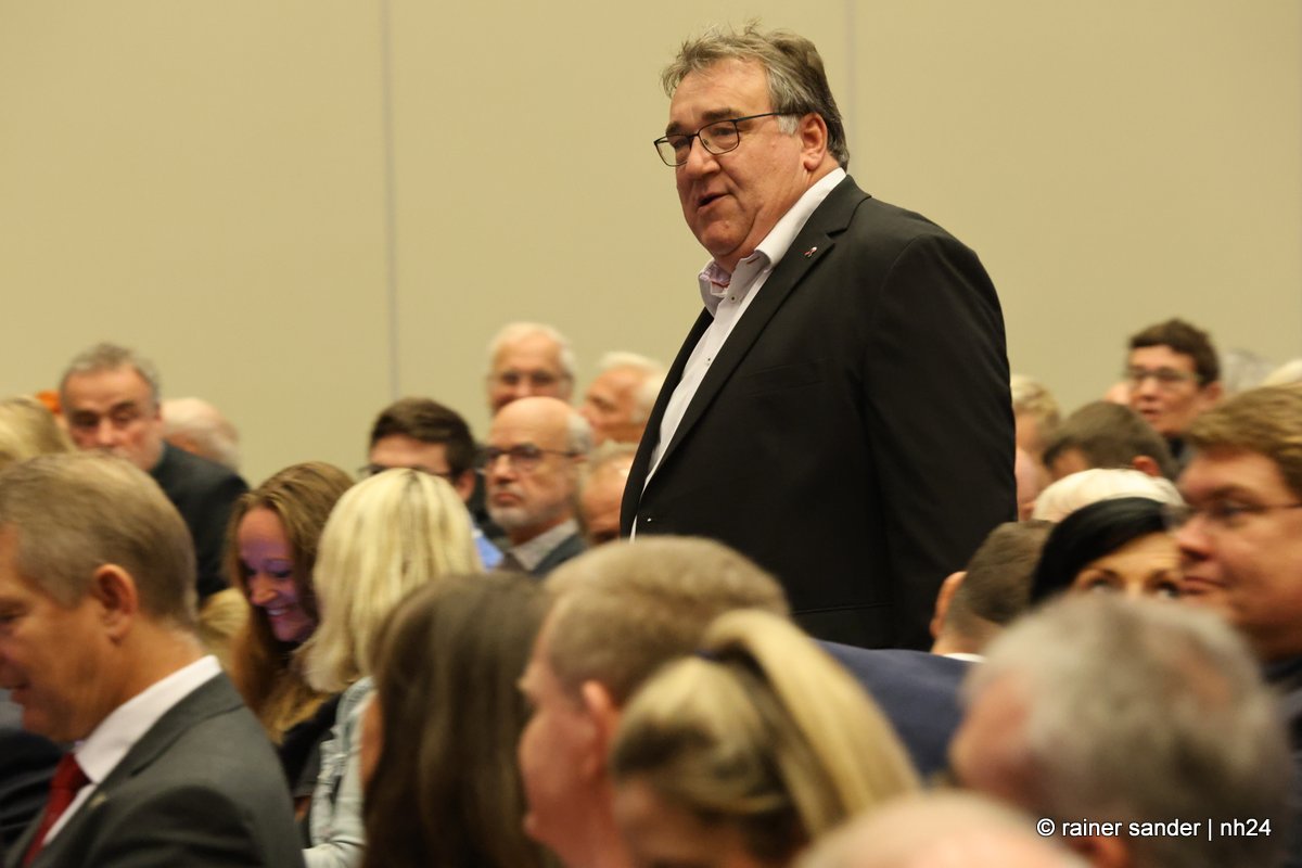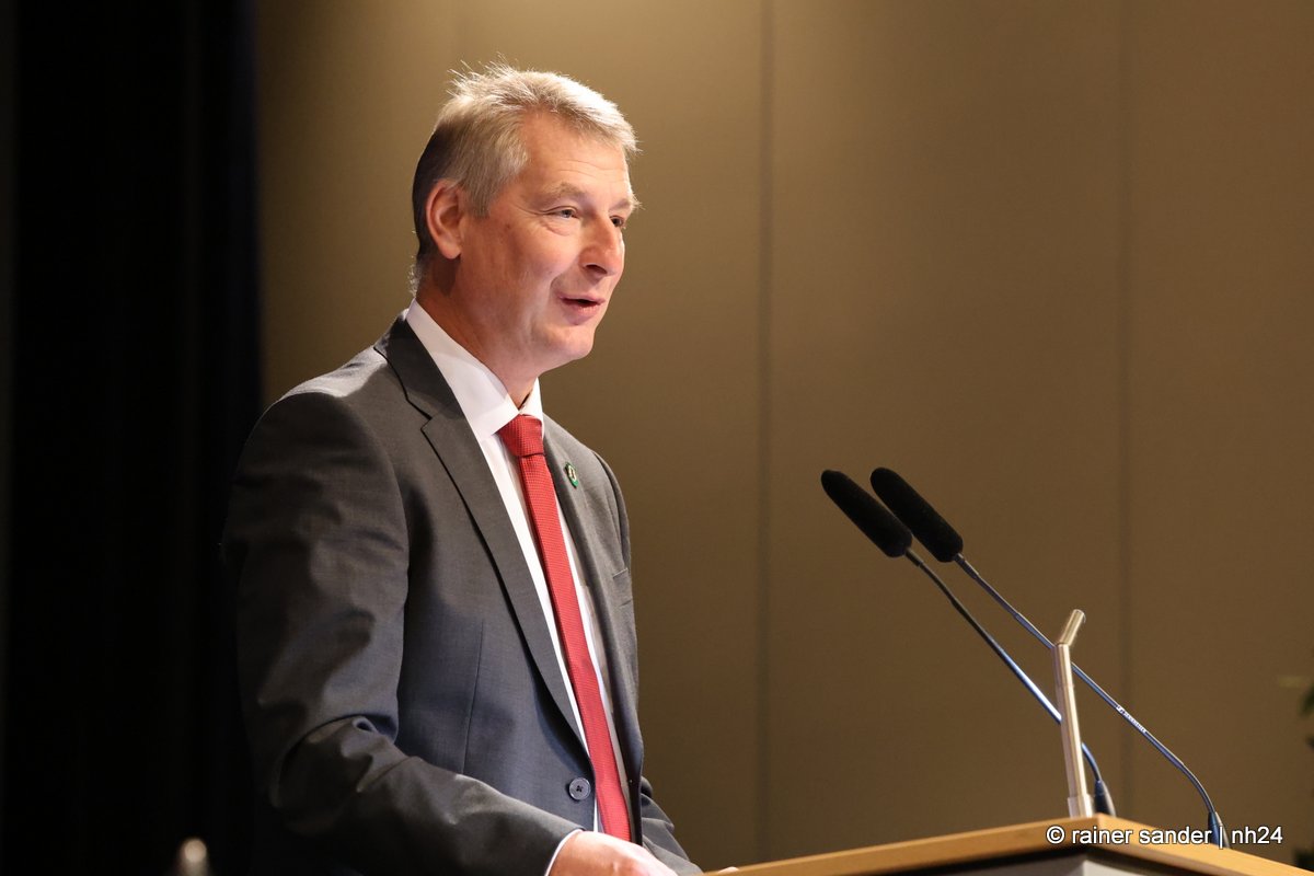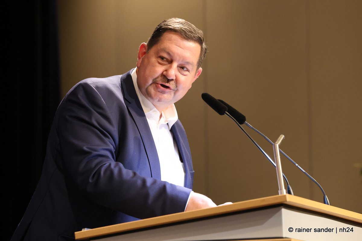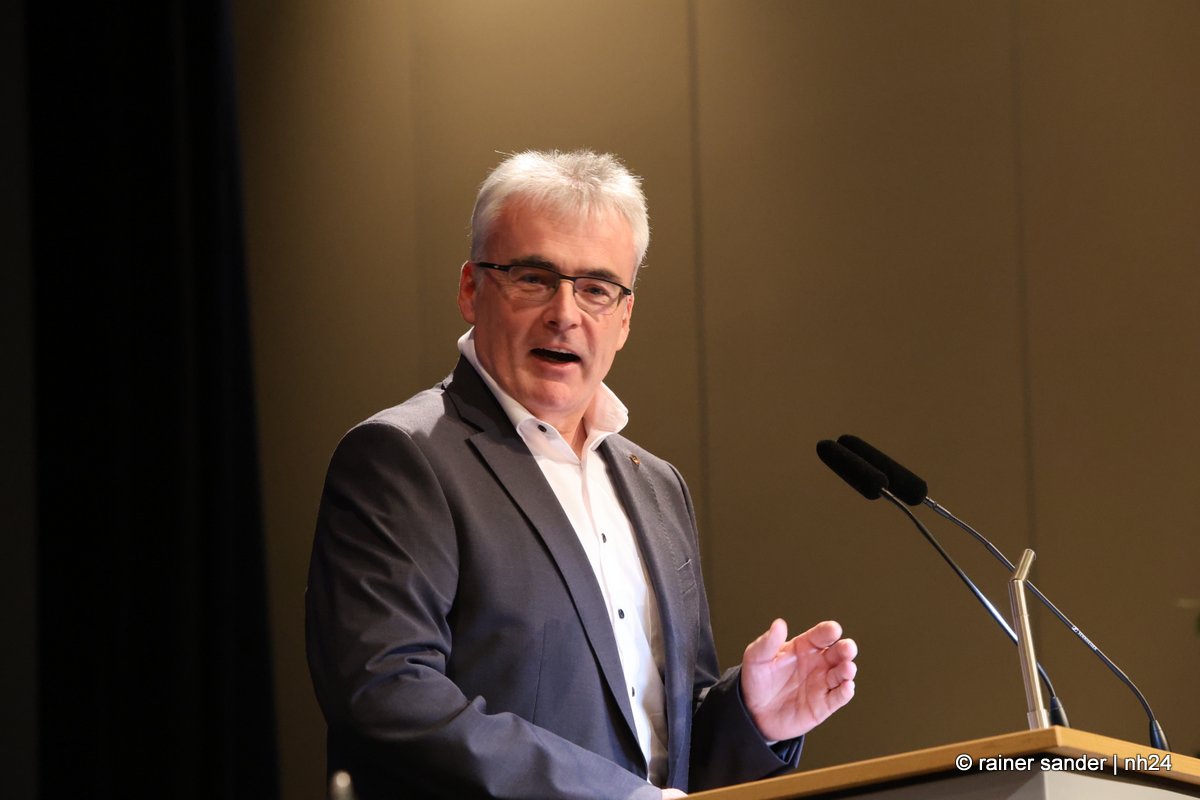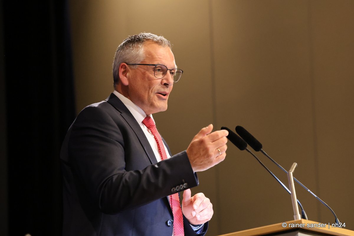 Landrat Andreas Siebert schaut und sucht Zusammenarbeit mit allen Bürgermeistern. „Nach Corona, Ukraine-Krieg und Rechtsruck gestalten wir Heimat.“ Baunatal sei einer der wichtigsten Wirtschaftsstandorte. 21.000 Menschen pendeln nach Baunatal Ein Drittel der Wirtschaftsleistung des Kreises entstehe hier. „Wir haben viel dafür getan, dass sich VW entwickeln kann.“ Jetzt ist Zeit für eine Gegenleistung.