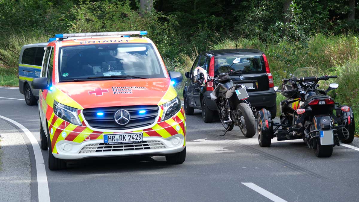 Nach Polizeiangaben streifte die KTM des 28-Jährigen den Fiat einer 39-jährigen Fahrerin aus Oberaula. Der Motorradfahrer stürzte und rutschte über die Fahrbahn. Unmittelbar nach dem Unfall behandelten Ersthelfer den schwer verletzten Mann, bis Rettungskräfte eintrafen.