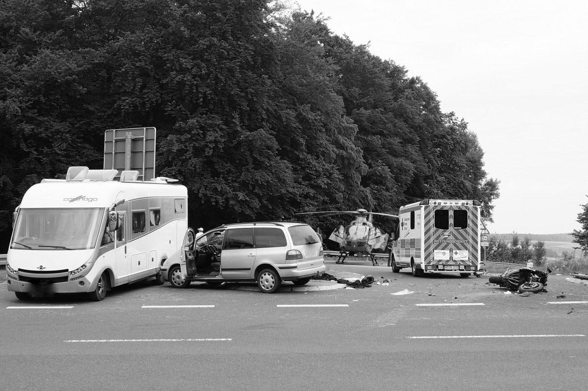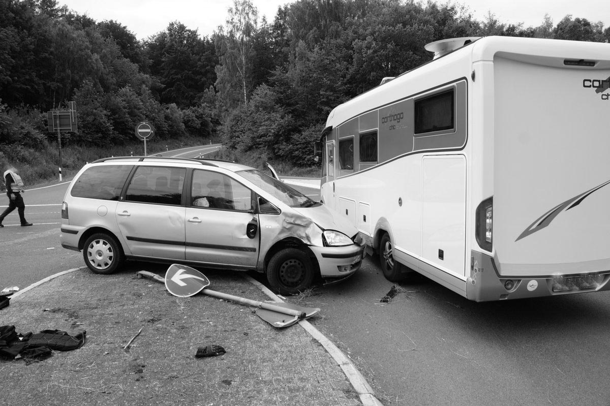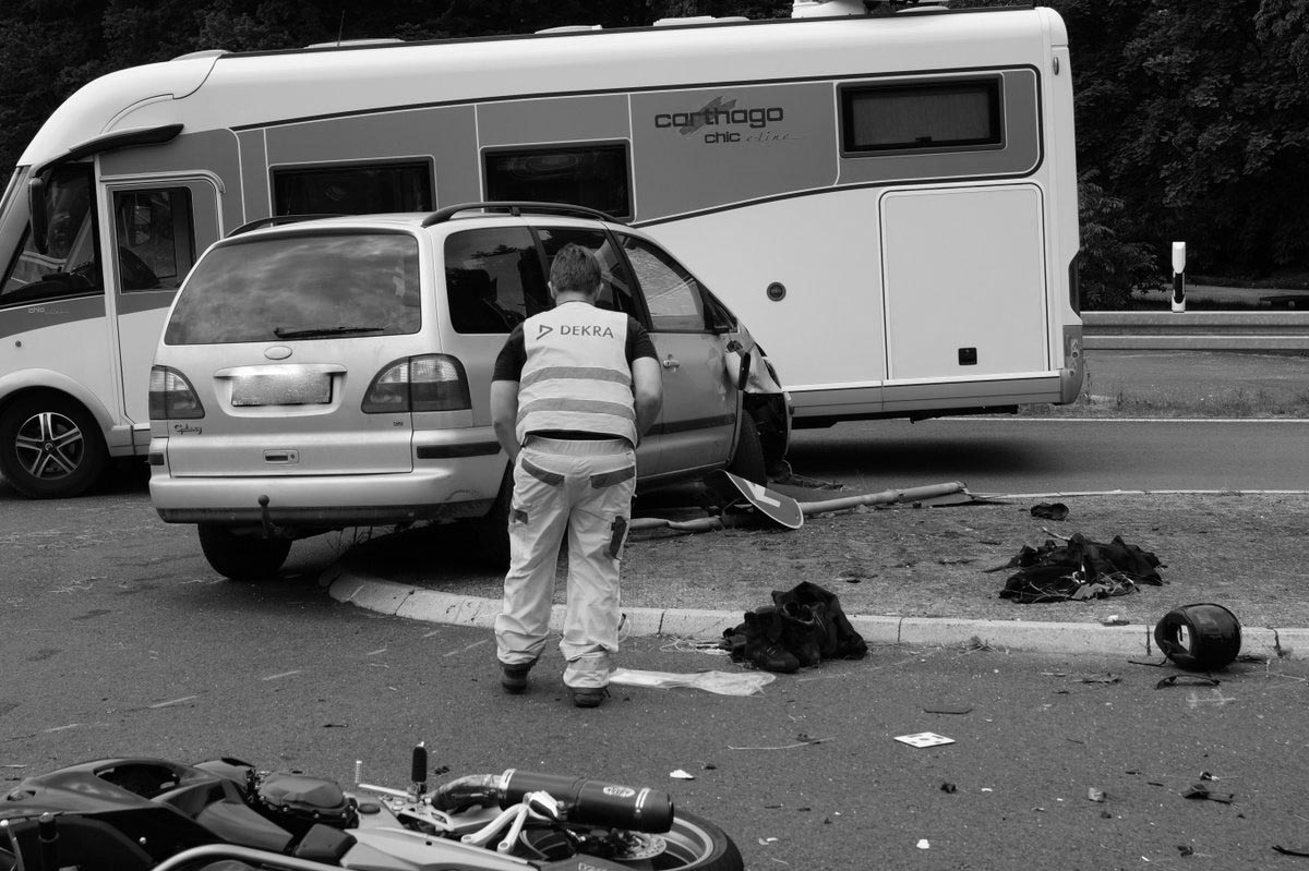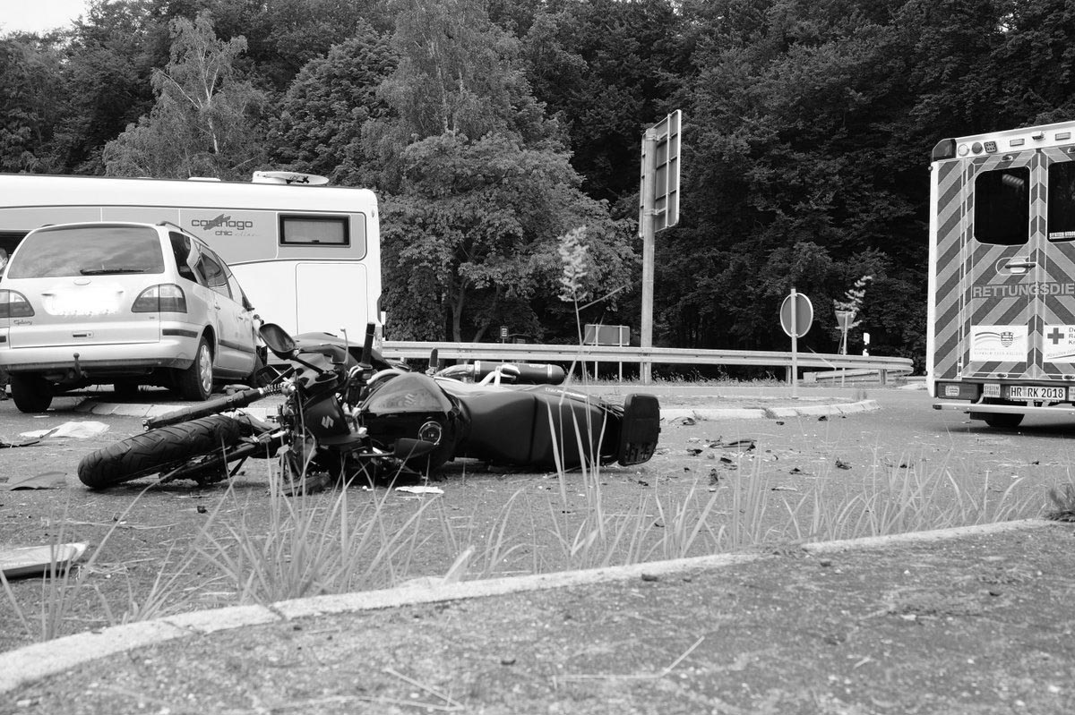 Laut Polizeiangaben fuhr ein 70-jähriger Mann aus Neukirchen mit seinem Pkw (Ford Galaxy) von der A 7 ab und übersah den in Richtung Felsberg fahrenden Motorradfahrer (45 aus Gudensberg) auf der Bundesstraße im Kreuzungsbereich nach Heßlar. Die beiden Fahrzeuge prallten zusammen. Der Motorradfahrer stürzte, der Ford überfuhr die Verkehrsinsel in Richtung Heßlar und kam an einem Wohnmobil zum Stehen, dessen Fahrer aus dem Landkreis Winsen an der Luhe auf die Autobahn auffahren wollte.