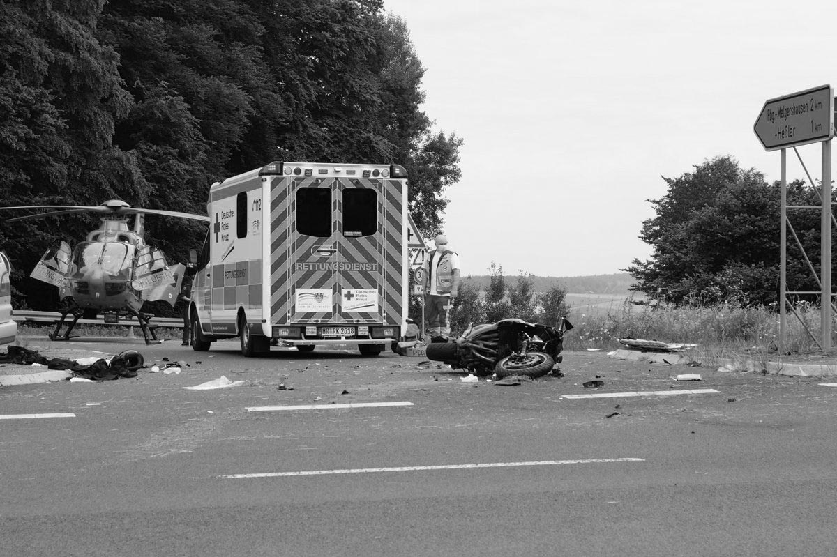 FELSBERG/GUDENSBERG/NEUKIRCHEN. Schwerer Unfall am Sonntagvormittag auf der B 253 zwischen Melsungen und Felsberg. In Höhe der Autobahnabfahrt zur A 7 prallten gegen 10:25 Uhr ein Pkw und ein Motorrad zusammen. Der Motorradfahrer verstarb noch an der Unfallstelle.