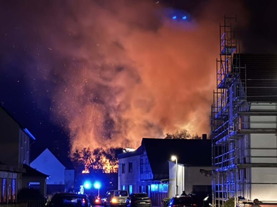 NEUKIRCHEN-RIEBELSDORF. Am späten Mittwochabend ist in Neukirchen (Schwalm-Eder-Kreis) eine Scheune in Brand geraten. Als die alarmierten Feuerwehrkräfte gegen 22:05 Uhr am Einsatzort in der Mühlgasse im Stadtteil Riebelsdorf eintrafen, schlugen die Flammen bereits meterhoch aus dem Gebäude. Der rot erleuchtete Himmel war weithin sichtbar und lockte zahlreiche Anwohner in die Nähe des Brandorts.