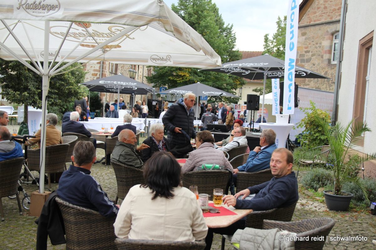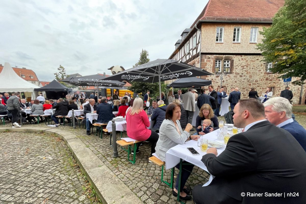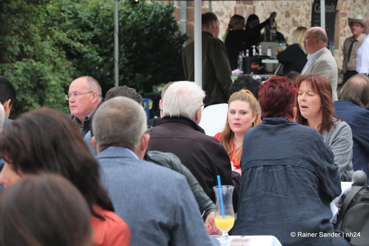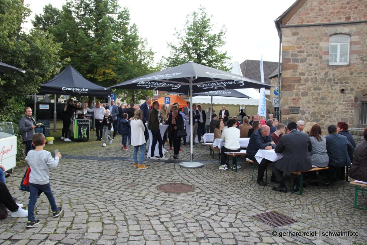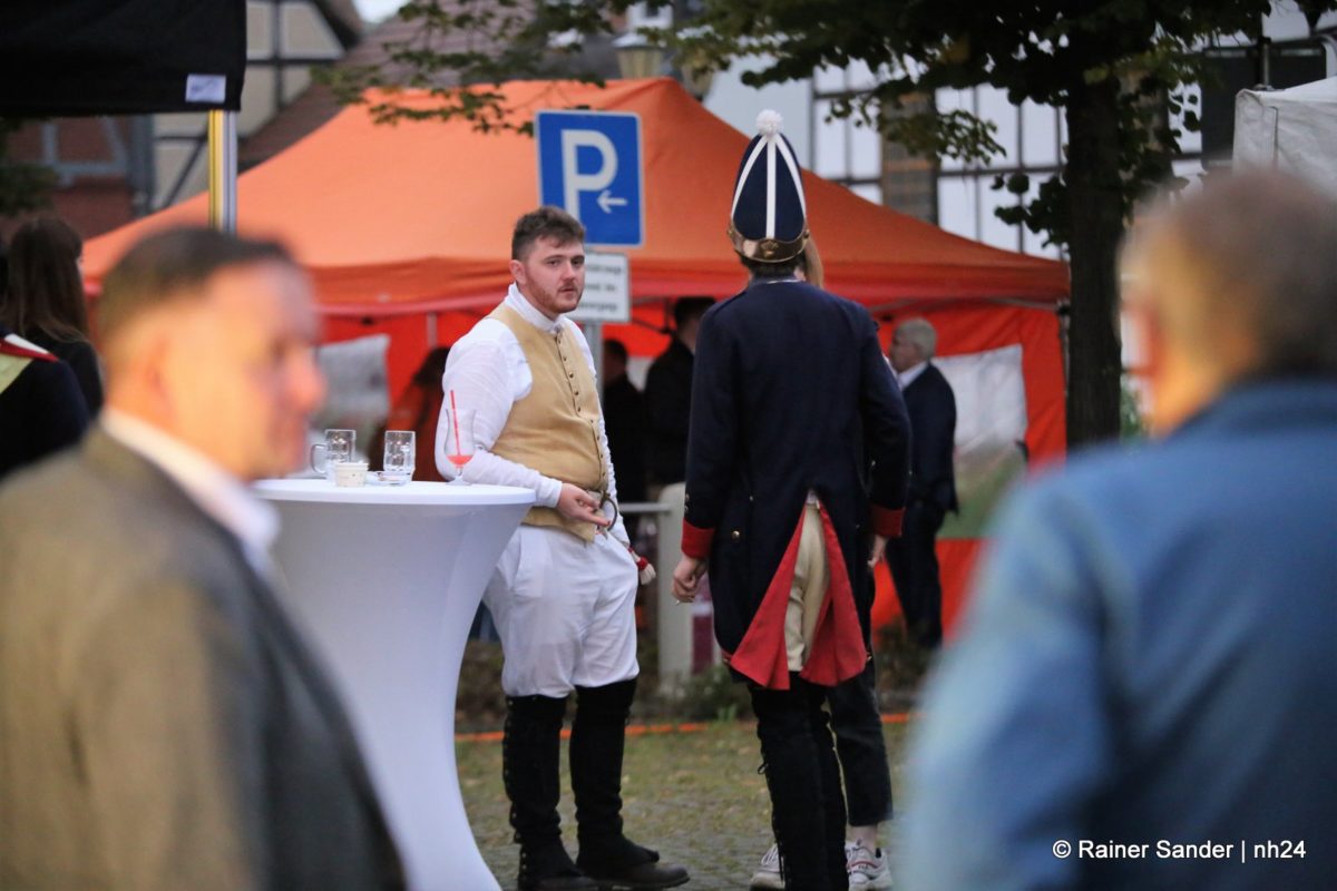 Die – unter Corona-Bedingungen – geladenen Gäste spiegelten einen Querschnitt der Region wider. Kreishandwerksmeister Michel, Sparkassen-Direktor Bechtel, Vertreter von Vereinen und Verbänden, Interessensgemeinschaften, Unternehmen oder Gewerkschaften, sie alle waren der Einladung zu Renew Europe ganz offensichtlich gerne gefolgt. Bei leckerem Essen aus heimisch-schwälmer Produktion und Tradition zeigte sich die Reformationsstadt als europäisches Zugpferd. Passend dazu mischten sich „Soldaten“ in historischen Uniformen unter die Gästeschar.