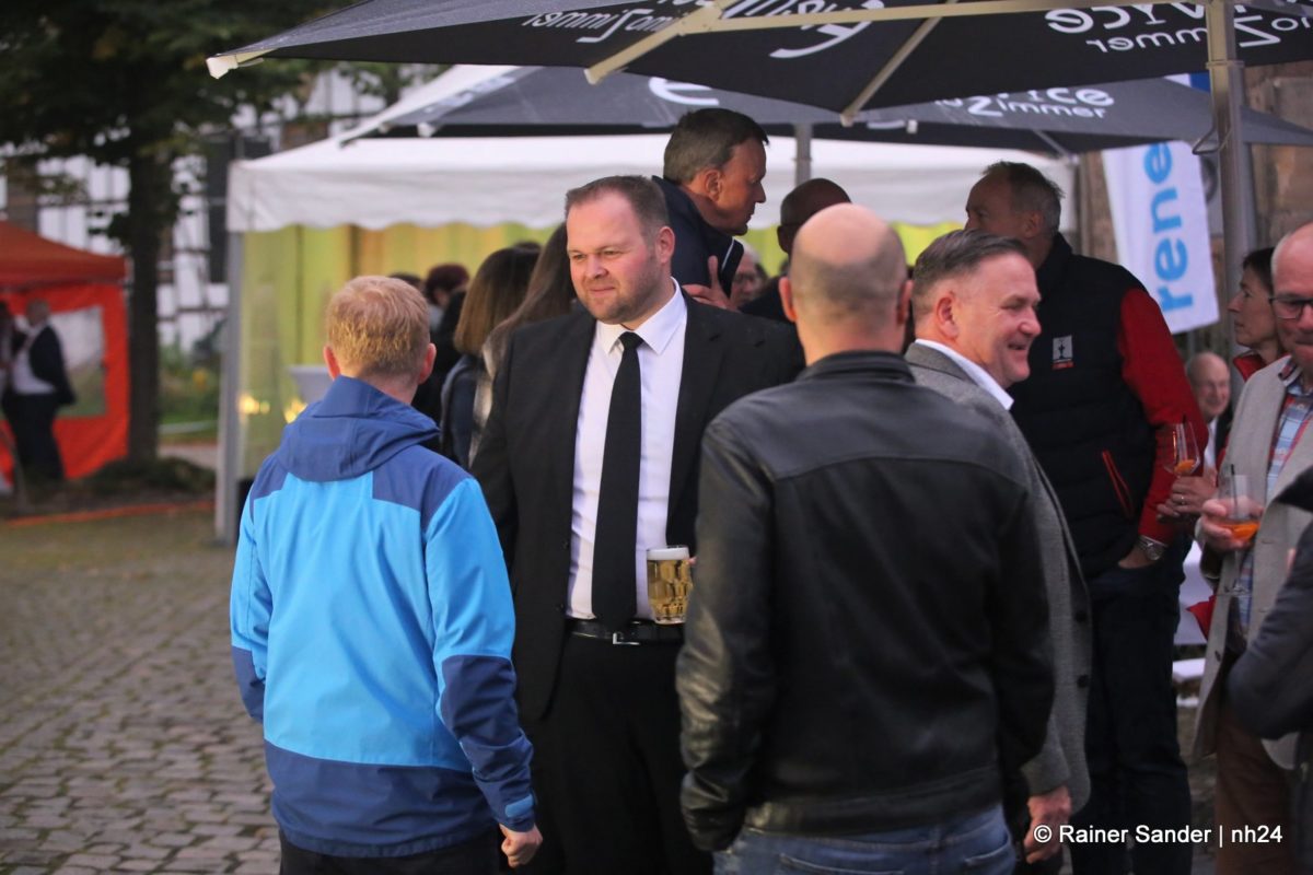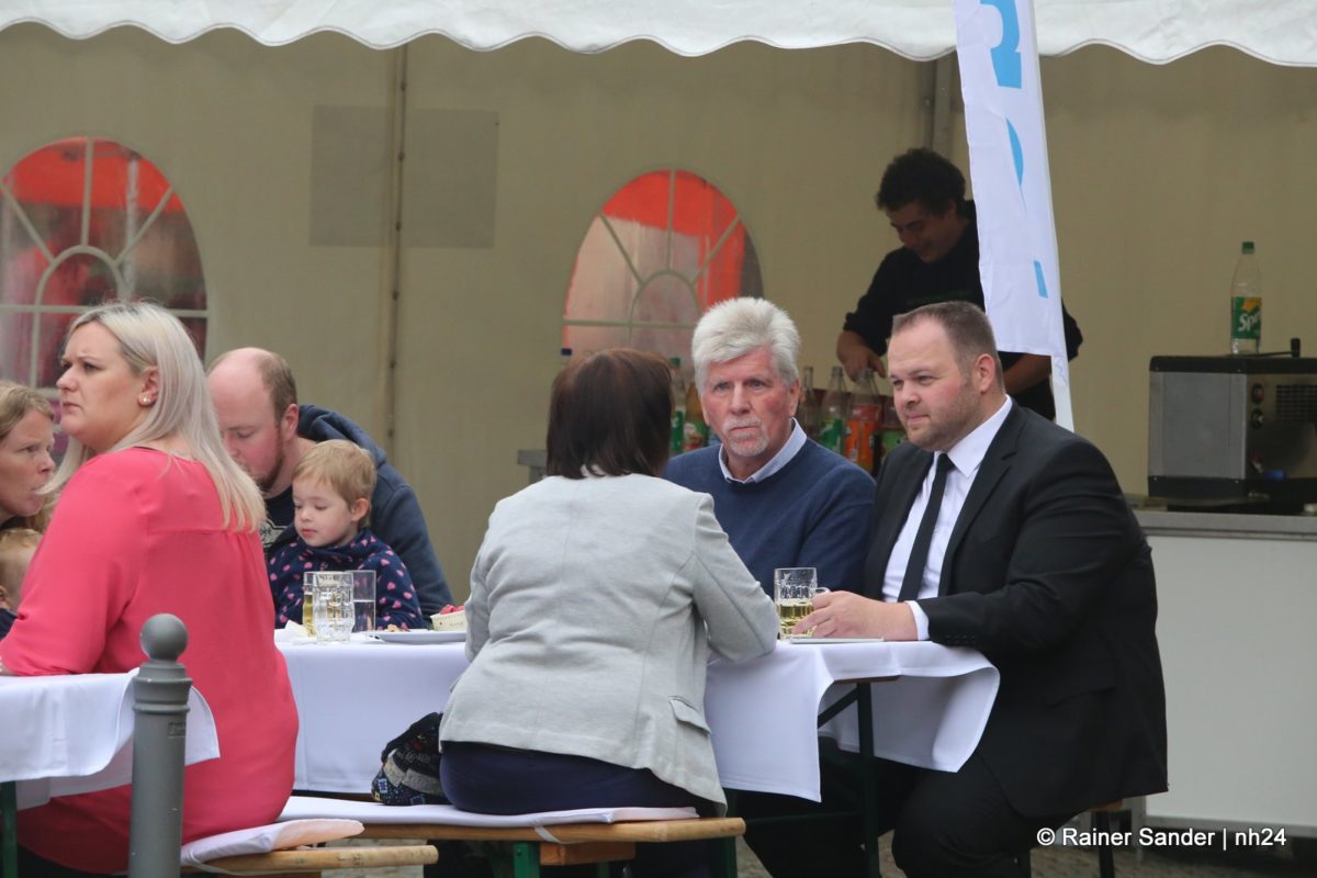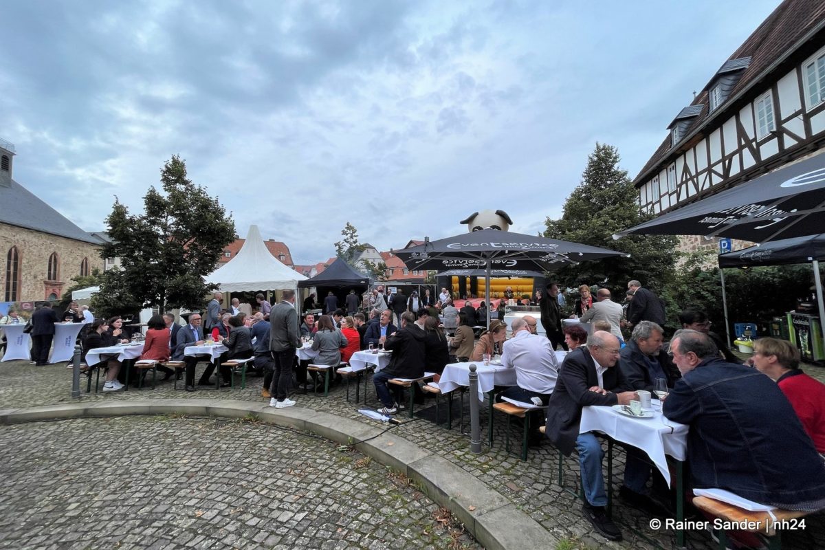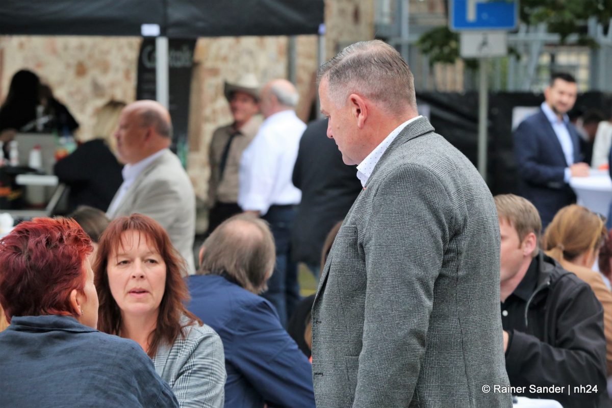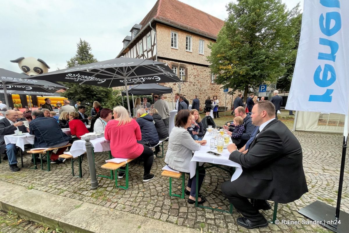 Die – unter Corona-Bedingungen – geladenen Gäste spiegelten einen Querschnitt der Region wider. Kreishandwerksmeister Michel, Sparkassen-Direktor Bechtel, Vertreter von Vereinen und Verbänden, Interessensgemeinschaften, Unternehmen oder Gewerkschaften, sie alle waren der Einladung zu Renew Europe ganz offensichtlich gerne gefolgt. Bei leckerem Essen aus heimisch-schwälmer Produktion und Tradition zeigte sich die Reformationsstadt als europäisches Zugpferd. Passend dazu mischten sich „Soldaten“ in historischen Uniformen unter die Gästeschar.