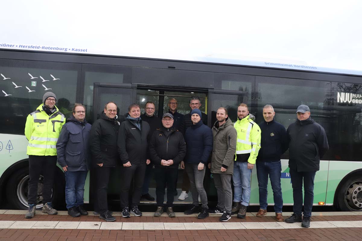 Auf dem Bild sind Tobias Koch, Bauleitung Weber-Ingenieure GmbH, Moritz Braun, NVV-Verkehrsangebot, Martin Lometsch, Leitung NVV-Verkehrsangebot Bus, Uwe Schwalm, Hephata-Geschäftsbereichsleiter Bau und Technik, Peter Bauscher, Geschäftsführer Bauscher GmbH, Igor Schreiner, Bauleitung Weber-Ingenieure GmbH, Hannes Diehl, Straßen- und Verkehrstechnik Stadt Schwalmstadt, Matthias Bauscher, Bauleitung Bauscher GmbH, Menduh Gerguri, Busfahrer der Linie 490, und Timo Reuter, Polier Bauscher (1. Reihe, von links) sowie Landrat Winfried Becker, Hephata-Direktor Dr. Michael Gerhard, Schwalmstadts Bürgermeister Tobias Kreuter (2. Reihe, von links) zu sehen. (wal)