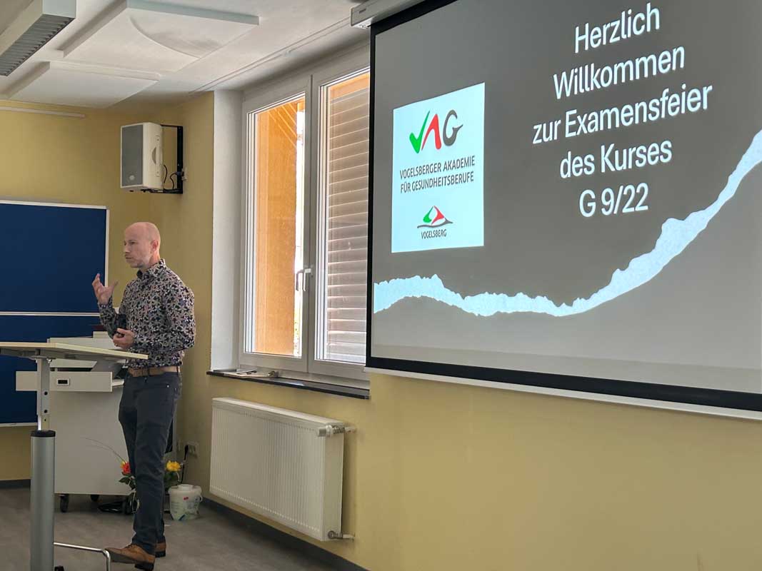 Kursleiter Henrik Seel, der den Kurs im vergangenen Jahr übernommen hatte, blickte auf den gemeinsamen Weg zurück. Er betonte die persönliche und fachliche Entwicklung der Absolventinnen und Absolventen in den drei Jahren der Ausbildung und ermutigte sie, neugierig, empathisch und mutig in ihre berufliche Zukunft zu gehen. Zum Abschluss wünschte er ihnen eine gelungene Feier als verdienten Ausklang ihrer Ausbildungszeit.