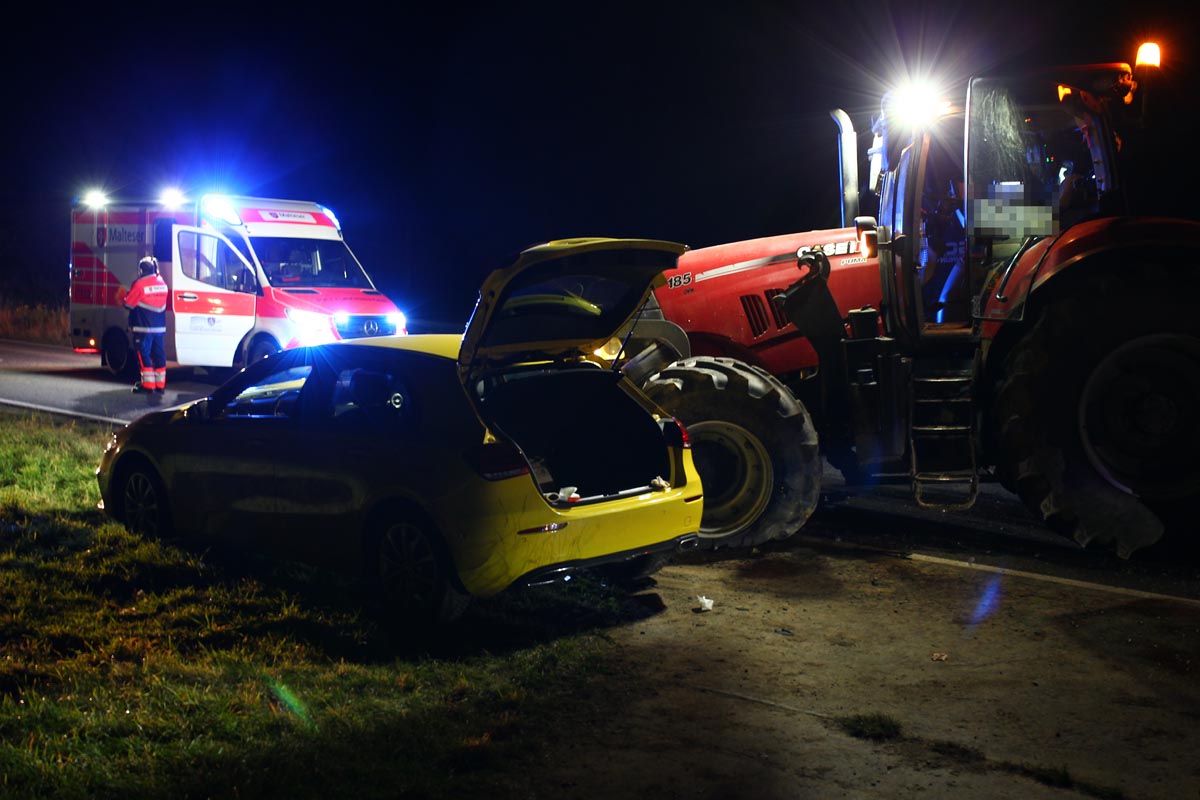 NEUENTAL. Auf gerader Strecke zwischen den Neuentaler Ortsteilen Schlierbach und Waltersbrück kollidierten am frühen Dienstagabend ein Schlepper und ein Mercedes. Der Fahrer des Pkws (33) erlitt leichte Verletzungen und wurde von einem Rettungsteam der Malteser aus Jesberg in ein nahes Krankenhaus gebracht.