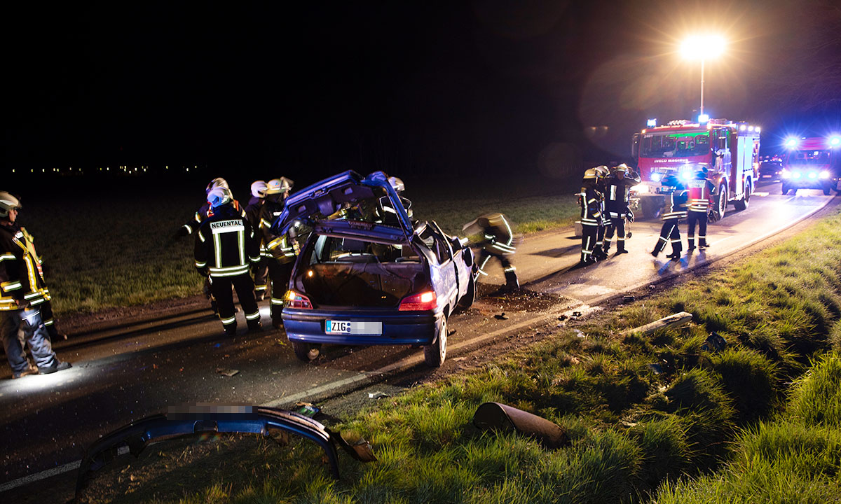 NEUENTAL. In der Nacht zu Mittwoch wurden die Unfallrettungszüge der Feuerwehren Neuental und Frielendorf, der Rettungsdienst und die Polizei zu einem Unfall auf die Landesstraße zwischen Neuenhain und Zimmersrode alarmiert. Kurz hinter Neuenhain meldeten Zeugen einen total beschädigten Kleinwagen, in dem sich eine Person befinden sollte.
