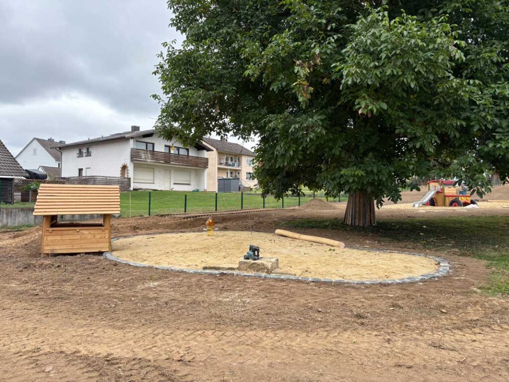 - Acker: Klettertrecker, Sandbereich mit Naturstein-Einfassung, Sitzmöglichkeiten