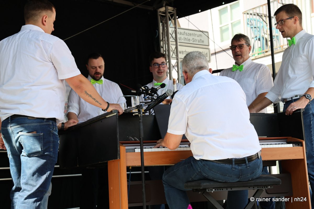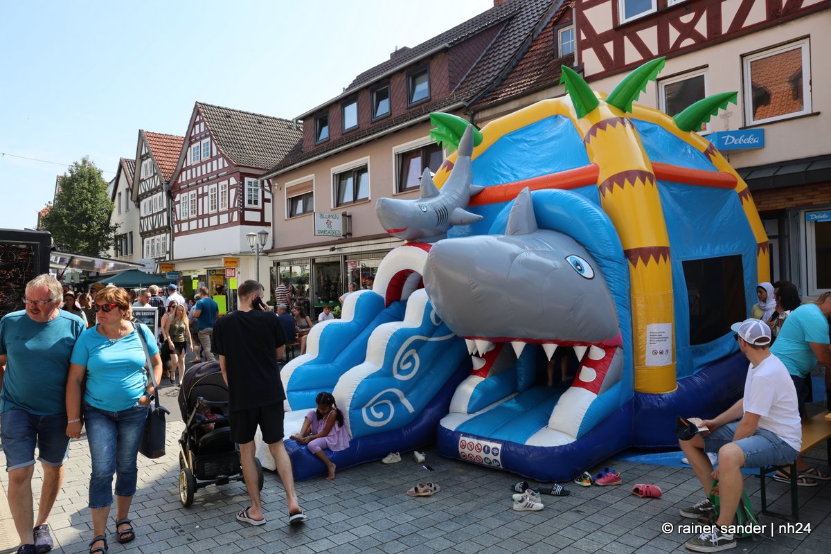 Das Angebot für Kinder hat Reizüberflutungen vermieden. Eine kleine aufgeblasene Kletterburg (natürlich auch nicht von einem regionalen Veranstalter) und Kinderschminken – immerhin vom Hobbyhaus Michel – hat gereicht. Der alte Titel „Ziegenhain vom Feinsten“ passt nicht mehr auf das neue Konzept, das mit Discount-Qualität und Massentauglichkeit dem Trend nach Regionalität und Nachhaltigkeit widersteht. Nicht so ganz passend wirkte das anspruchsvolle Bühnenprogramm, organisiert von Steffen Dittmar am Sonntag. Die freien Plätze vor der Bühne offenbarten eine gewisse Distanz zwischen Esskultur und Musikkultur. Auch die Ausstellung von Künstlern der „Neue Brücke“ schien etwas abgehängt zu sein im Rathaus.