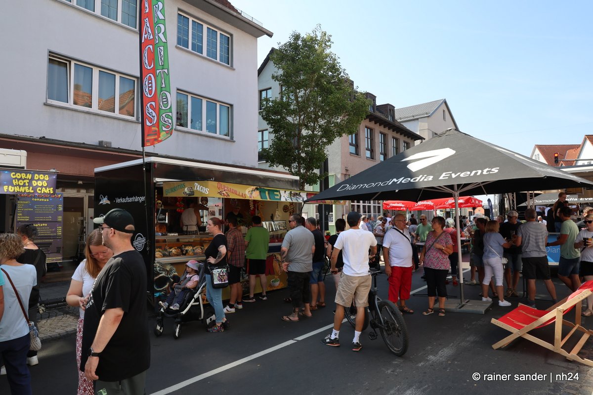 Beim Flanieren störten auch keine Walkingacts mehr, dafür fielen uniformierte Fußstreifen auf. Boris Rhein hat Wort gehalten. Es ist mehr Polizei auf den Volksfesten zu sehen. Diamond Media Events gibt in freundlicher Weise auch Trucks eine Chance, die schon etwas betagt und historisch wirken. Einige Food-LKW sind echte Oldtimer der Branche. Schön, dass sie noch fahren und sogar grillen können! Der Tross zieht mit einem Komplettangebot von Stadt zu Stadt. Reisendes Volk, das die städtischen Eventplaner entlastet und der heimischen Gastronomie viel Mühe erspart. Gelegentlich mag die Frage nach dem Warum des Ganzen aufgekommen sein.
