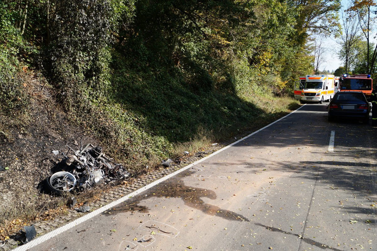 (Aktualisiert: 17:00 Uhr) Motorrad brennt aus