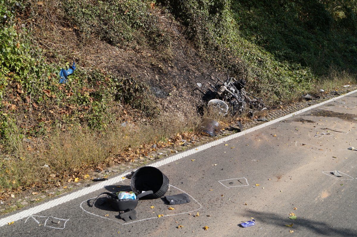 Ein 62-jähriger Mercedes-Fahrer aus Schimberg war zur Unfallzeit in Richtung Albungen unterwegs. In einer Kurve geriet er über die Fahrbahnmitte hinaus und kollidierte mit dem entgegenkommenden Motorrad, das in den Graben geschleudert wurde und ausbrannte. Der Motorradfahrer, ein 60-Jähriger aus Nörten-Hardenberg, erlitt lebensgefährliche Verletzungen, an denen er, trotz längerer Reanimation, noch an der Unfallstelle verstarb.