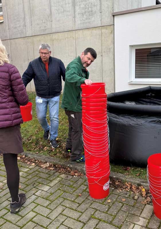 Für die Übung wurde die Wasserversorgung der Klinik für rund drei Stunden unterbrochen. Bereits kurz nach dem Abstellen der Leitung meldeten verschiedene Abteilungen den Ausfall und leiteten erste Maßnahmen ein. Ziel war es, die Kommunikationswege zu testen, prioritäre Bereiche zu identifizieren und die Zusammenarbeit unter realitätsnahen Bedingungen zu bewerten.