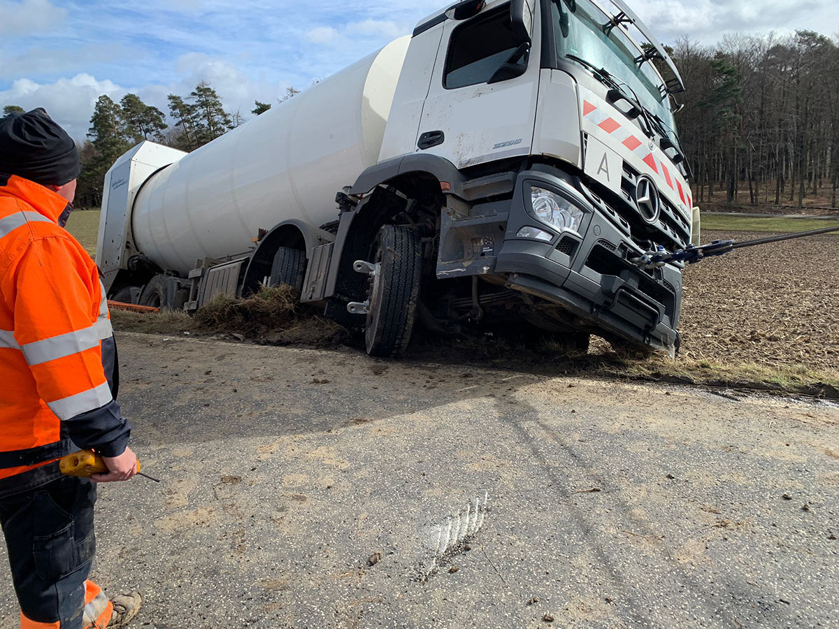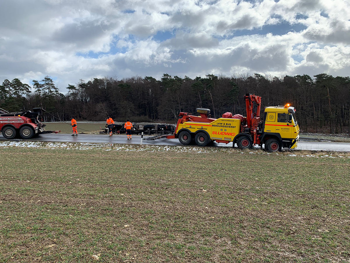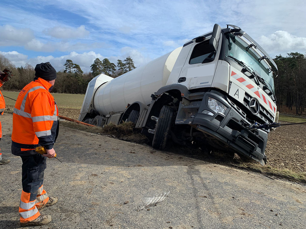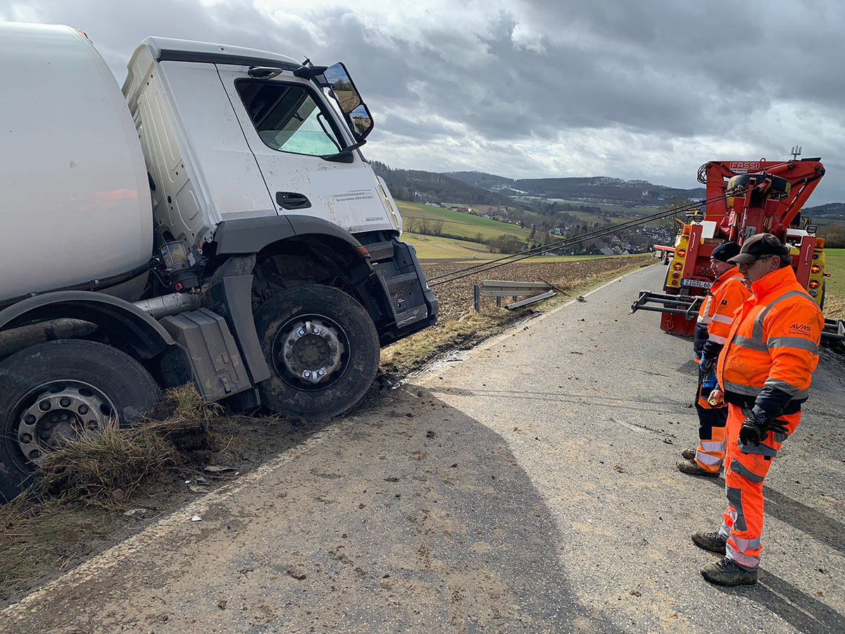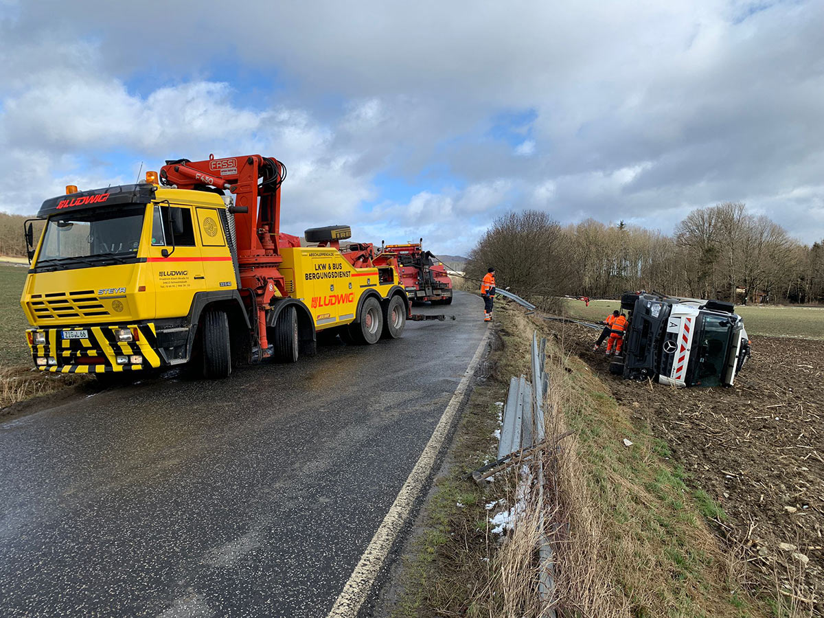 Etwa zeitgleich ereignete sich ein Unfall in Oberaula. Der Fahrer eines Entsorgungs-Lkw war von Salzberg kommend in Richtung Oberaula unterwegs. Ausgang einer Kurve geriet der Lkw nach links von der glatten Fahrbahn ab, durchbrach die Leitplanke und kippte auf die linke Seite. Das Fahrzeug musste aufwendig geborgen werden. Die Strecke war während der notwendigen Maßnahmen stundenlang gesperrt. Die Höhe des Schadens ist nicht bekannt. (wal)