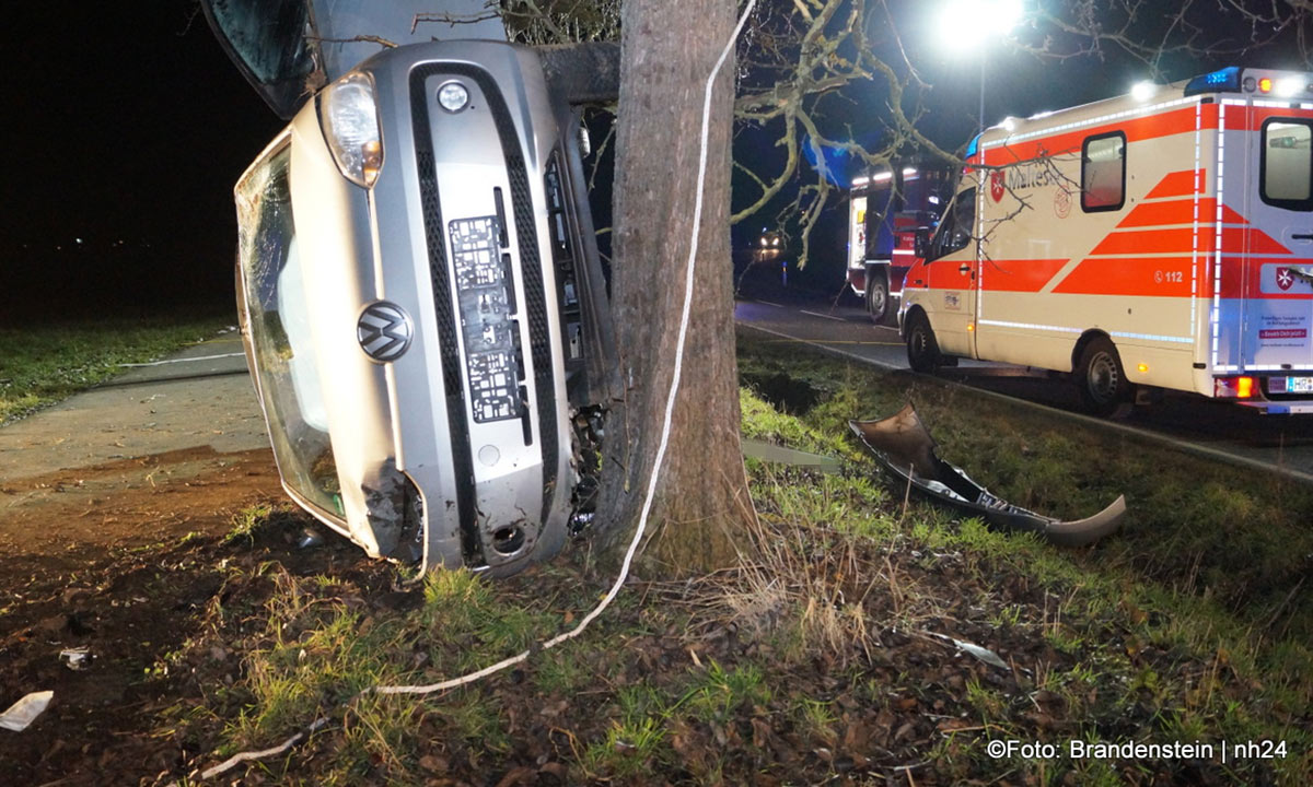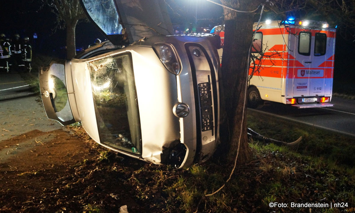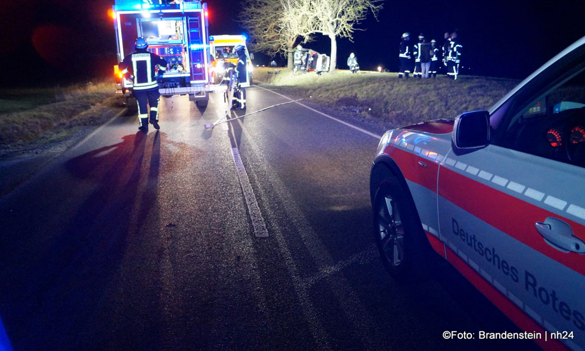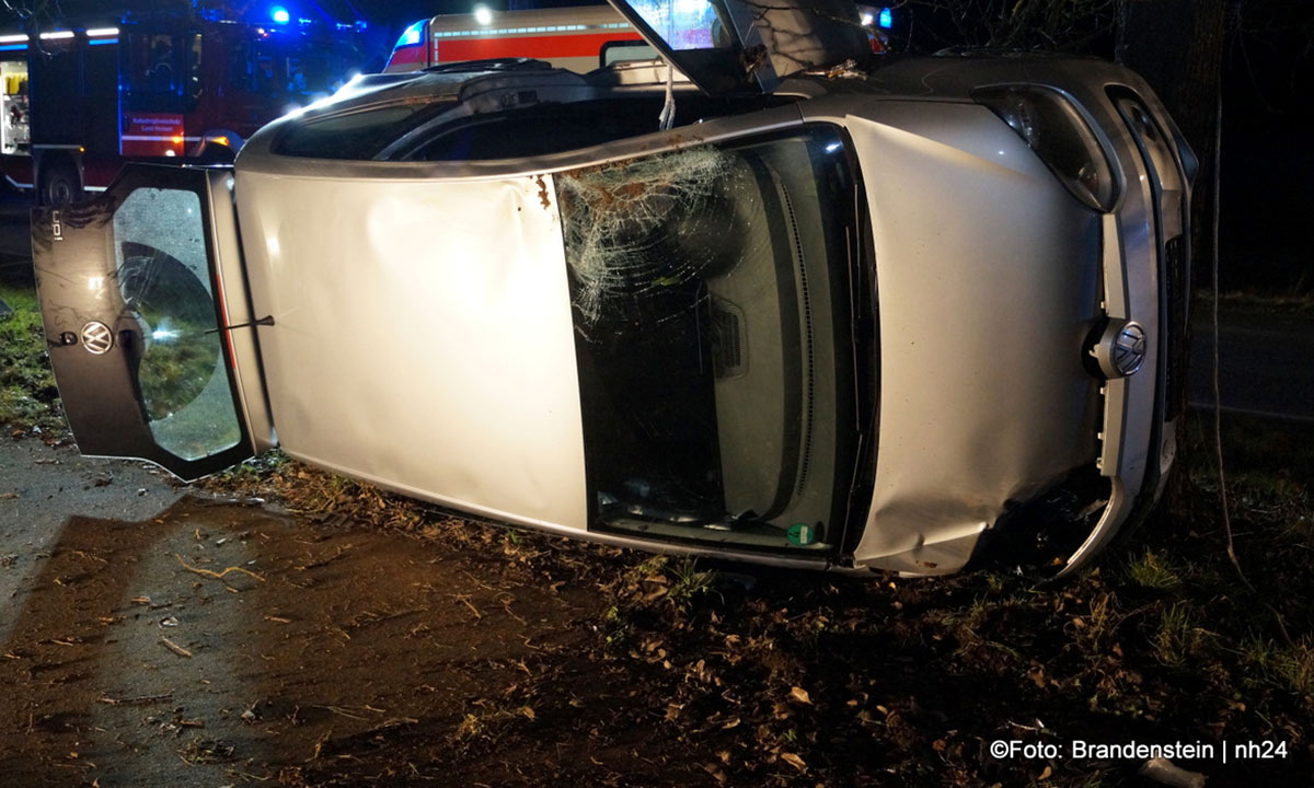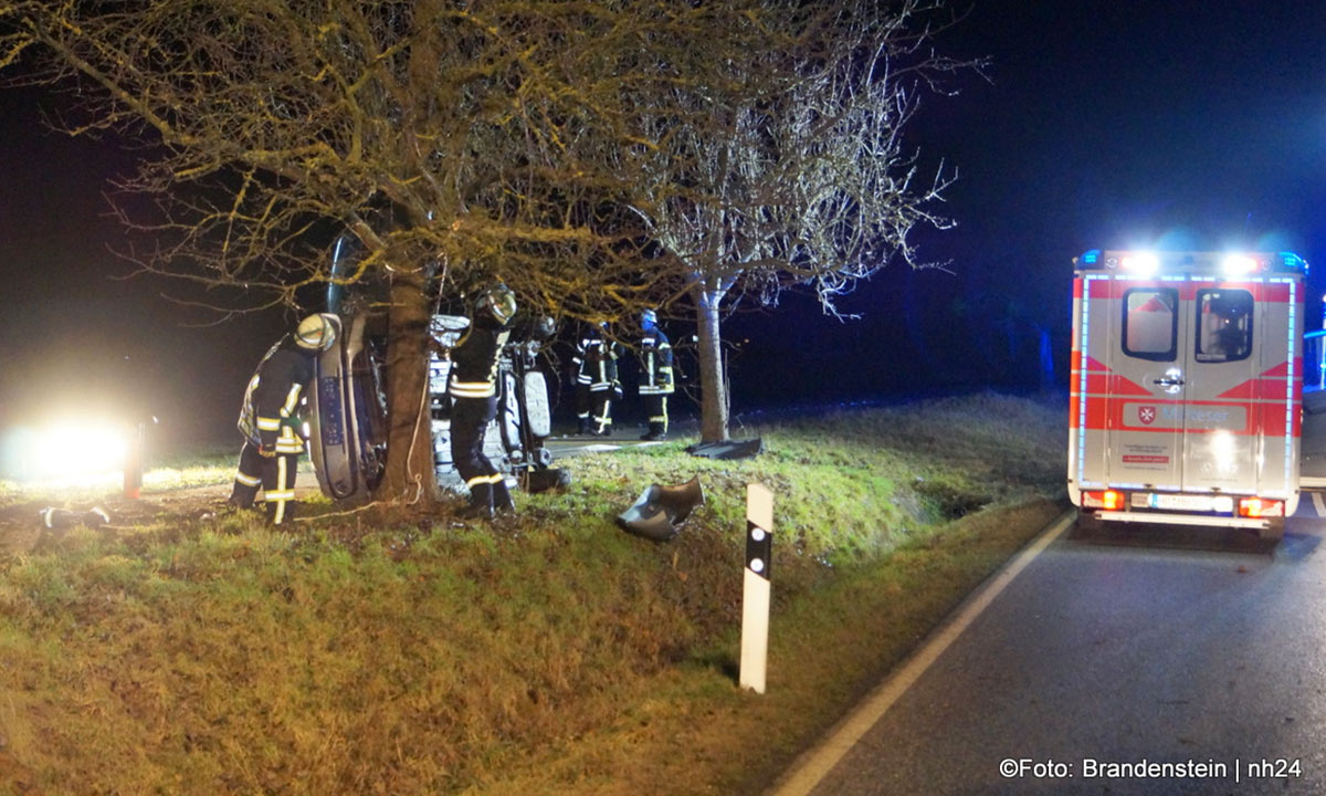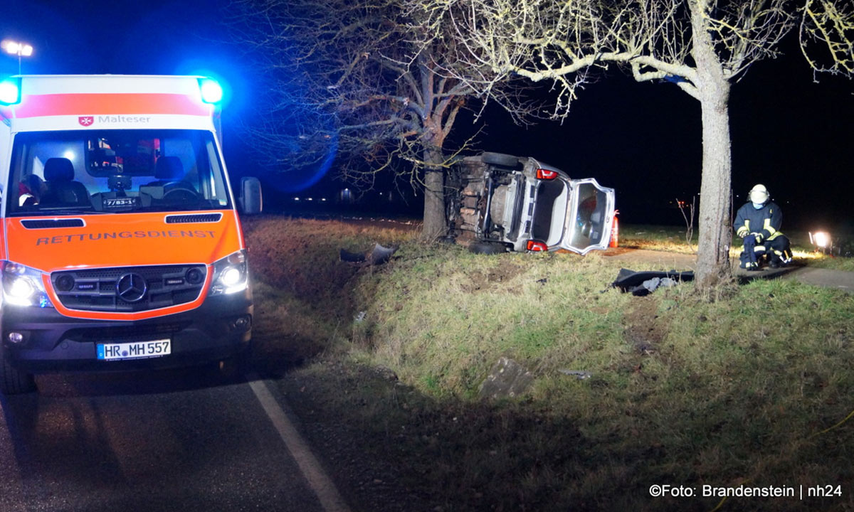 Die junge Frau war gegen 18:25 Uhr auf dem Weg von Obervorschütz in Richtung Gudensberg. In Höhe des Golfparks geriet sie auf den rechten Seitenstreifen, stieß gegen einen Erdwall und prallte leicht gegen einen Baum. Das Unfallwrack kam auf der rechten Seite liegend zum Stillstand: Die 18-Jährige wurde glücklicherweise nicht eingeklemmt. Feuerwehrleute konnte sie durch das Heck des VWs retten.