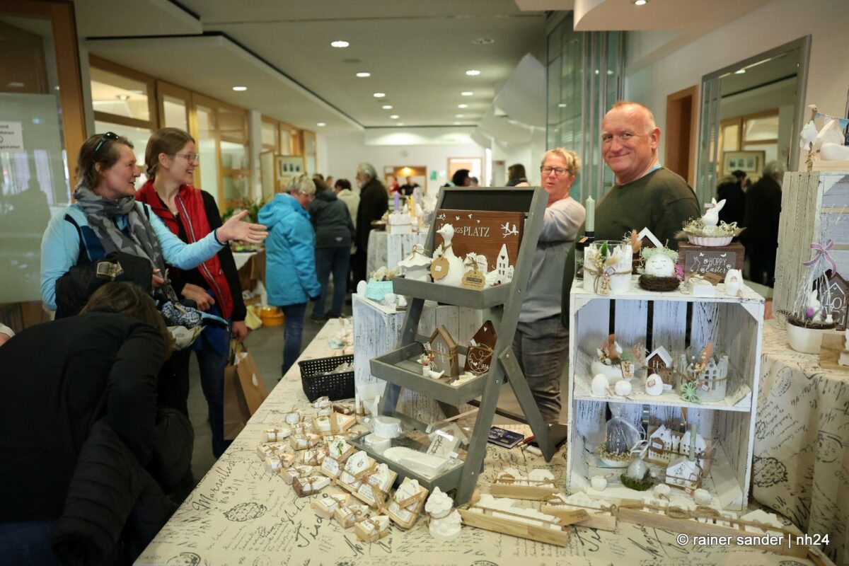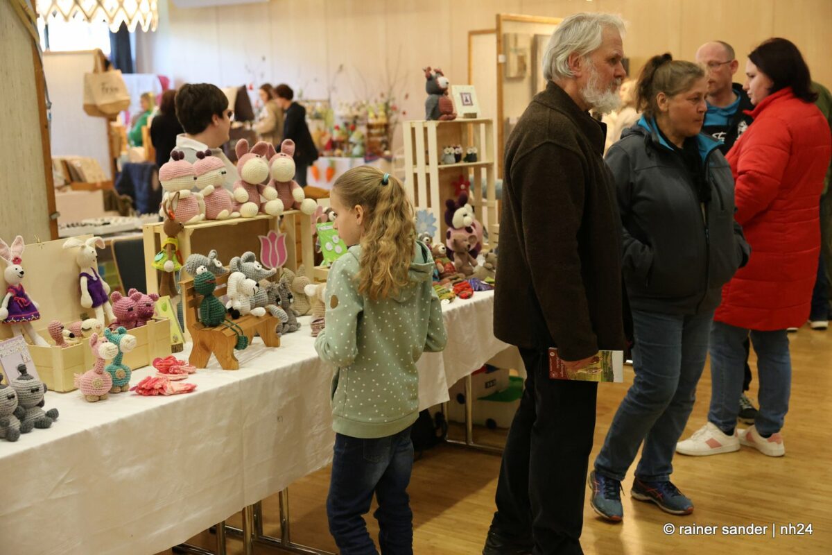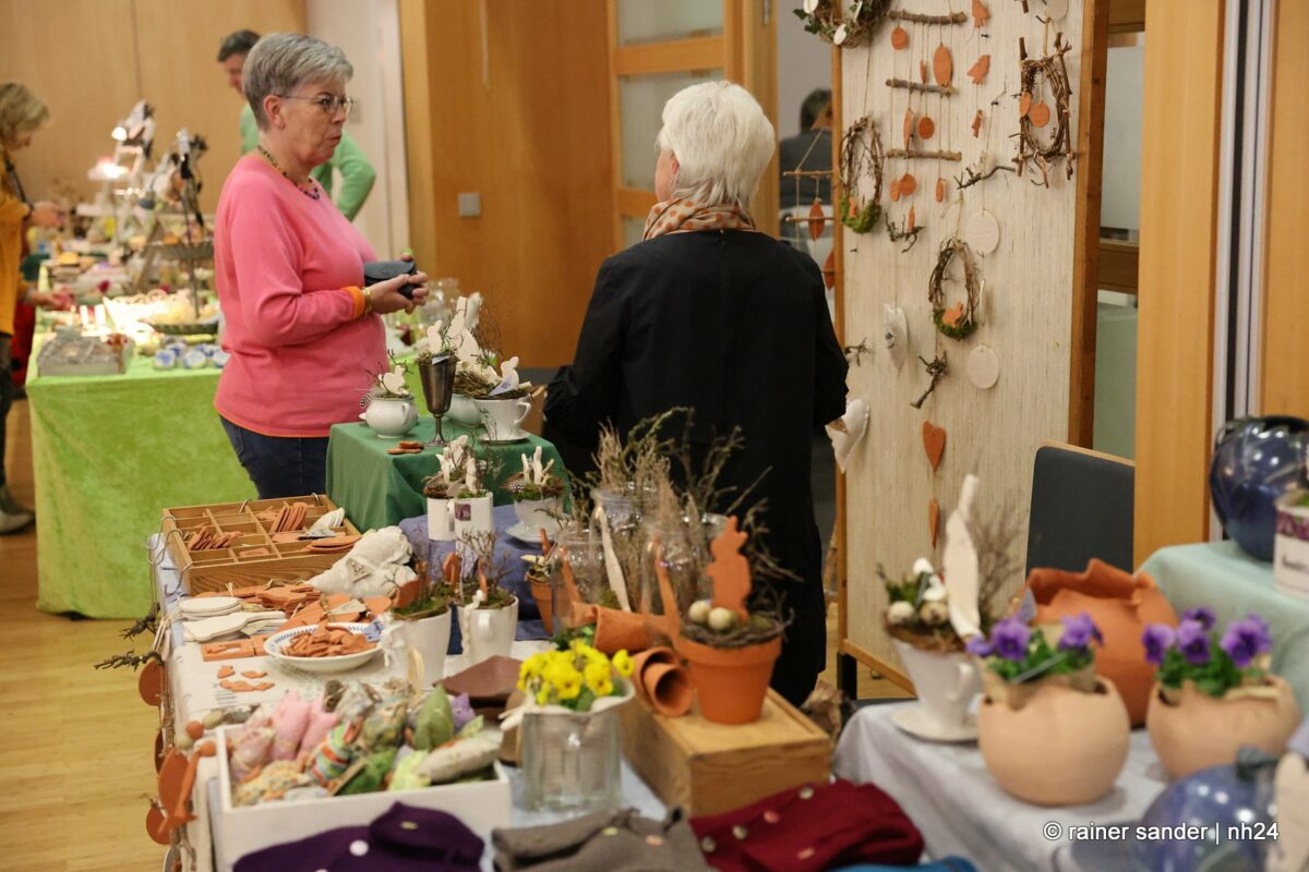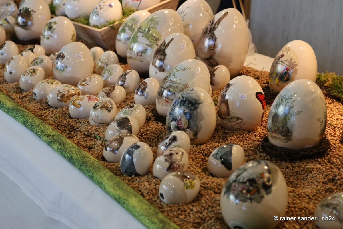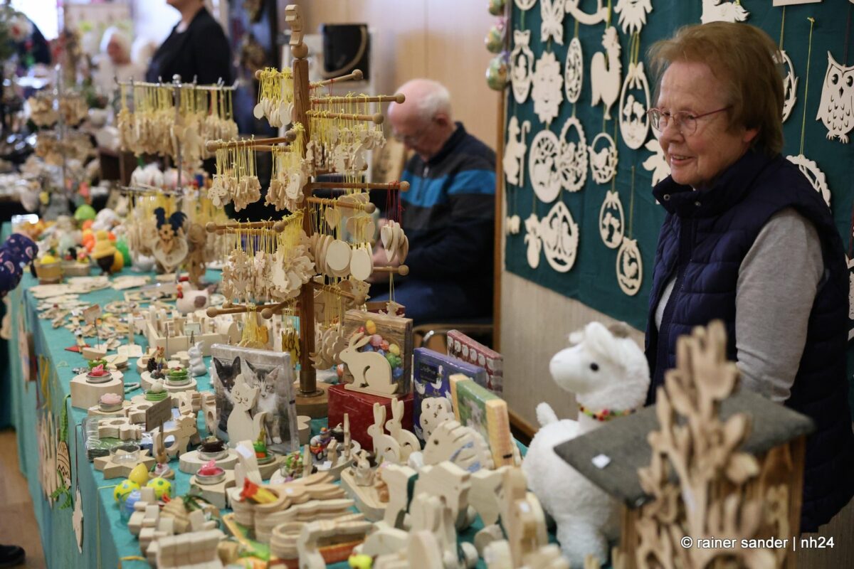 Im Bürgerhaus präsentierten die Kunsthandwerker der Region, was sie ein Jahr lang zu Ostern produziert haben. Viel Nützliches, Dekoratives und „schönes Unnützes“. Vieles zum Verschenken, manches zur Deko für zu Hause. Da duftete es – außer nach Kaffee und Kuchen am Nachmittag – nach Lavendel oder Seife. Es glitzerten Edelsteine und Porzellaneier. Dort lagen bunte Eier, hier gab es aus Holz geschnitzte Osterhasen. Oder wie wäre es mit fantasievoll gestalteten Osterkarten?