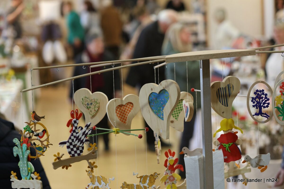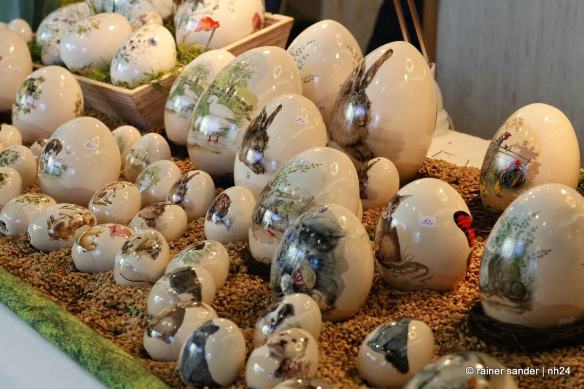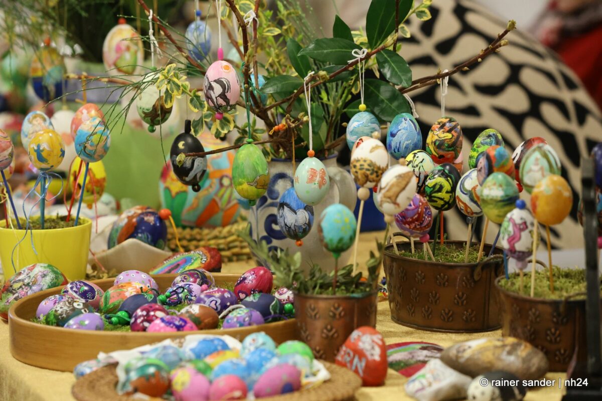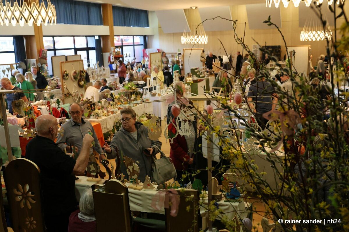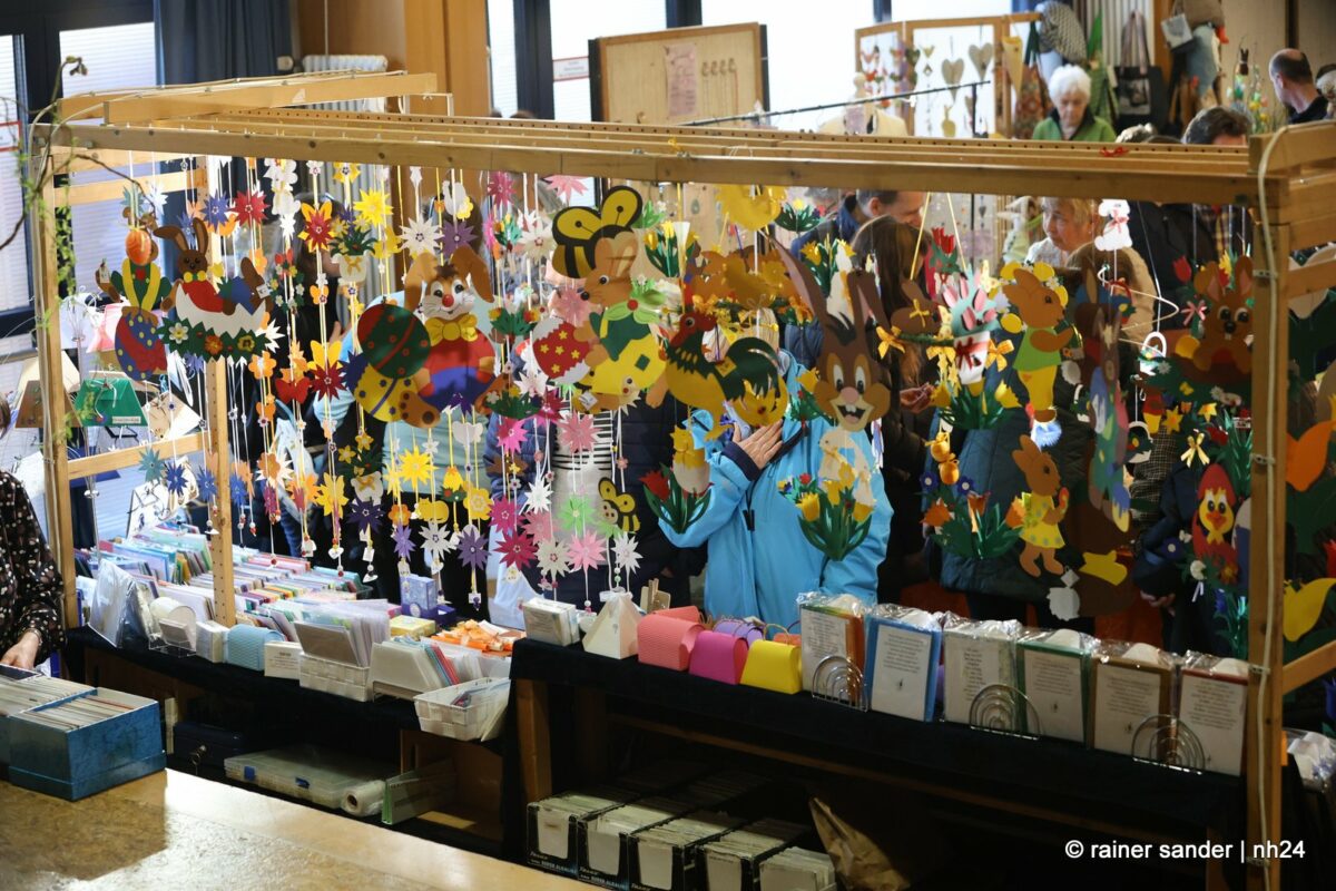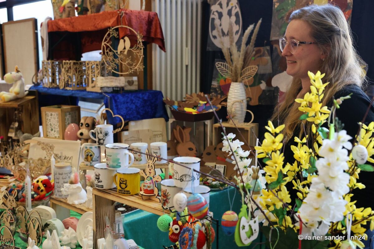 Im Bürgerhaus präsentierten die Kunsthandwerker der Region, was sie ein Jahr lang zu Ostern produziert haben. Viel Nützliches, Dekoratives und „schönes Unnützes“. Vieles zum Verschenken, manches zur Deko für zu Hause. Da duftete es – außer nach Kaffee und Kuchen am Nachmittag – nach Lavendel oder Seife. Es glitzerten Edelsteine und Porzellaneier. Dort lagen bunte Eier, hier gab es aus Holz geschnitzte Osterhasen. Oder wie wäre es mit fantasievoll gestalteten Osterkarten?
