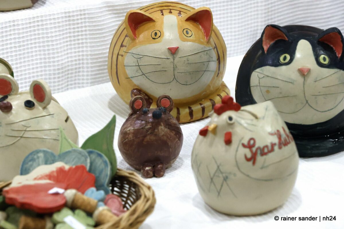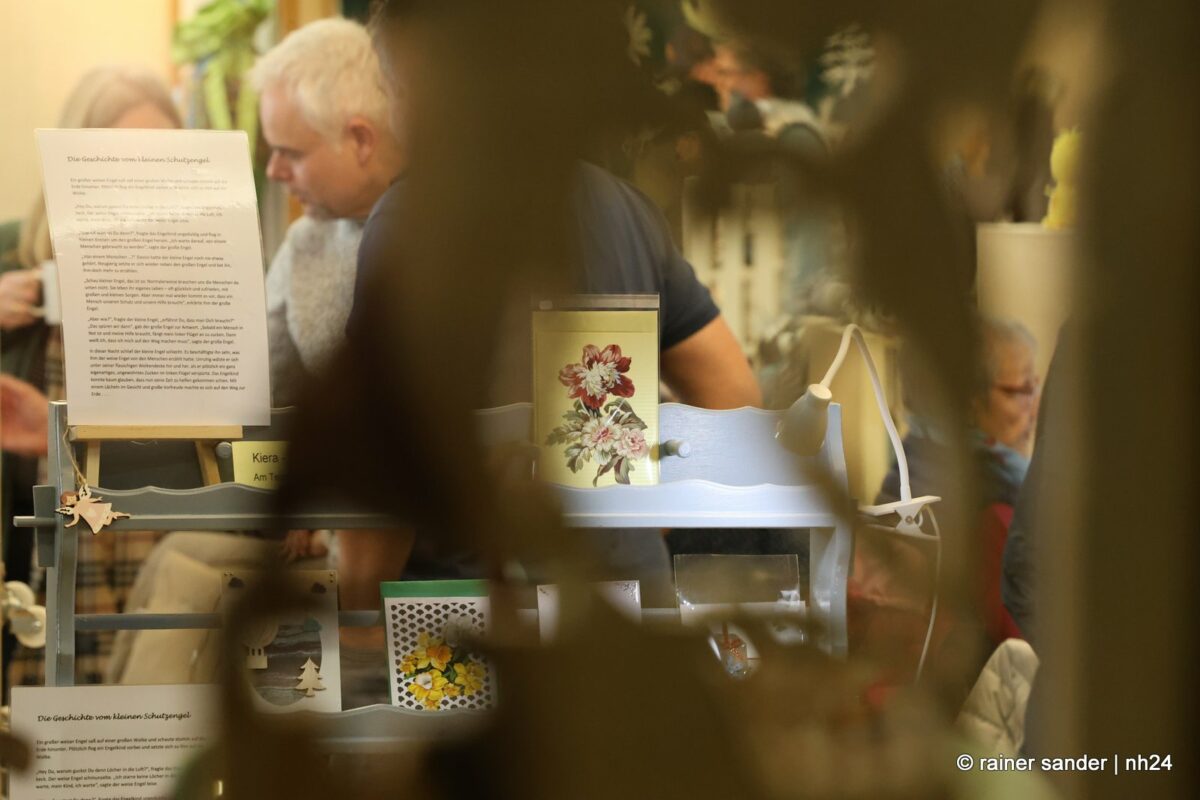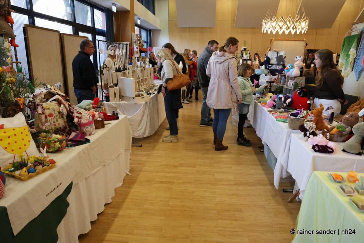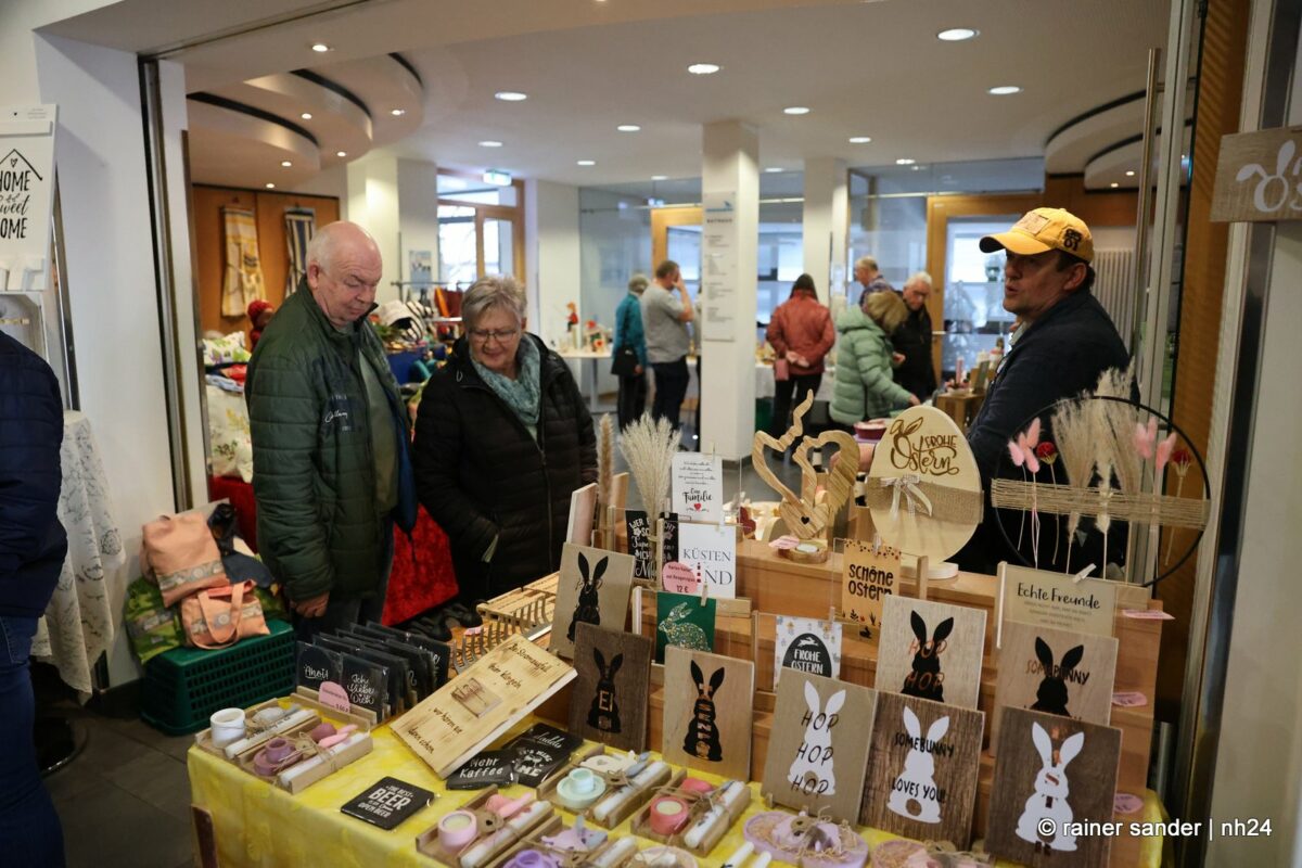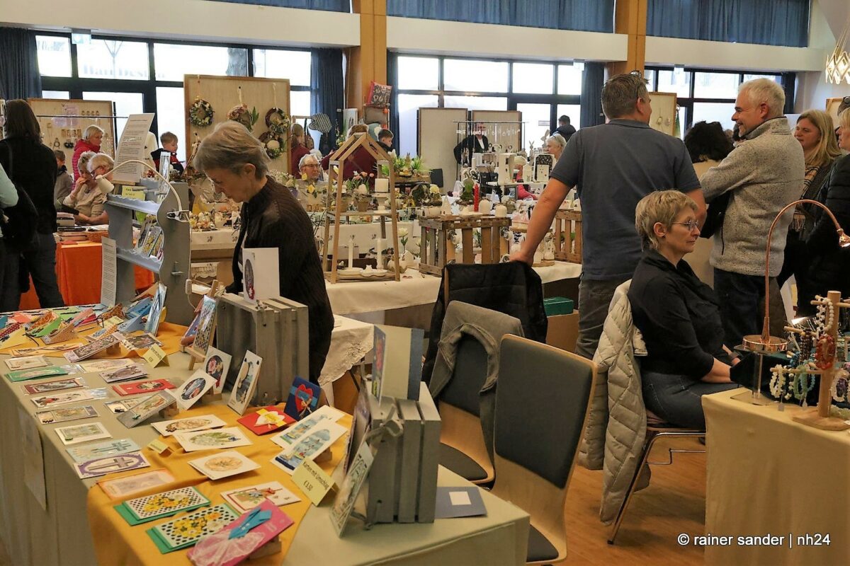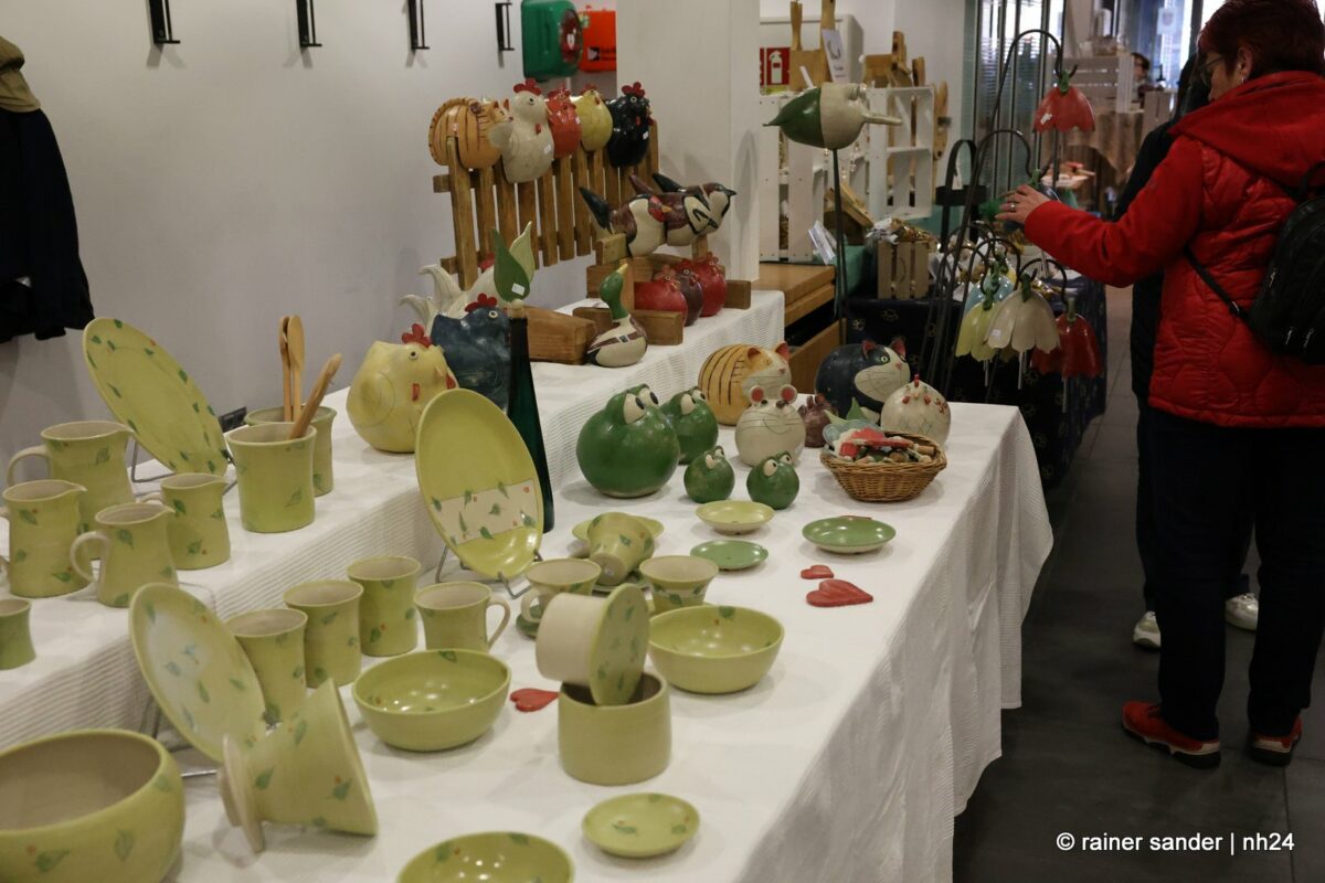 Im Bürgerhaus präsentierten die Kunsthandwerker der Region, was sie ein Jahr lang zu Ostern produziert haben. Viel Nützliches, Dekoratives und „schönes Unnützes“. Vieles zum Verschenken, manches zur Deko für zu Hause. Da duftete es – außer nach Kaffee und Kuchen am Nachmittag – nach Lavendel oder Seife. Es glitzerten Edelsteine und Porzellaneier. Dort lagen bunte Eier, hier gab es aus Holz geschnitzte Osterhasen. Oder wie wäre es mit fantasievoll gestalteten Osterkarten?