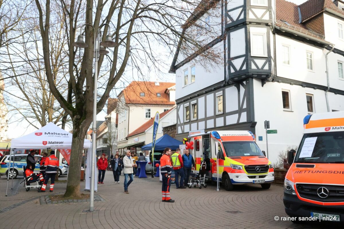 Im Außenbereich begrüßten Blumen vor dem Rathaus die vielen Besucher und rund um Bürgerhaus und Rathaus waren viele Stände aufgebaut mit Crêpes, Würstchen, Getränken und Informationen. Die Feuerwehr und die Malteser zeigten ihre Leistungsfähigkeit und warben zugleich um Unterstützung.