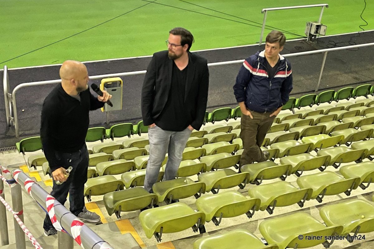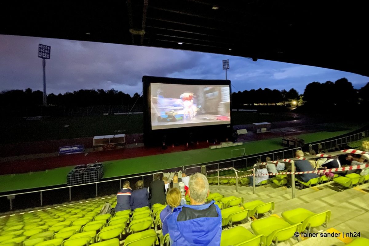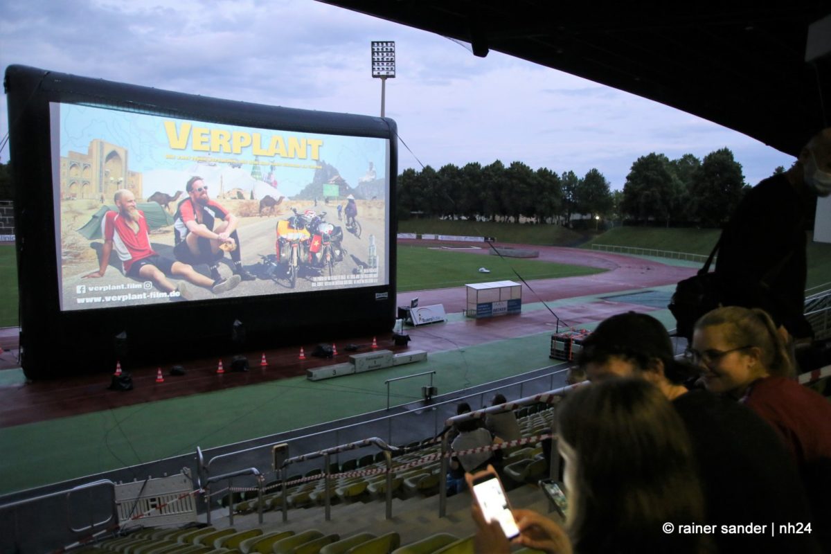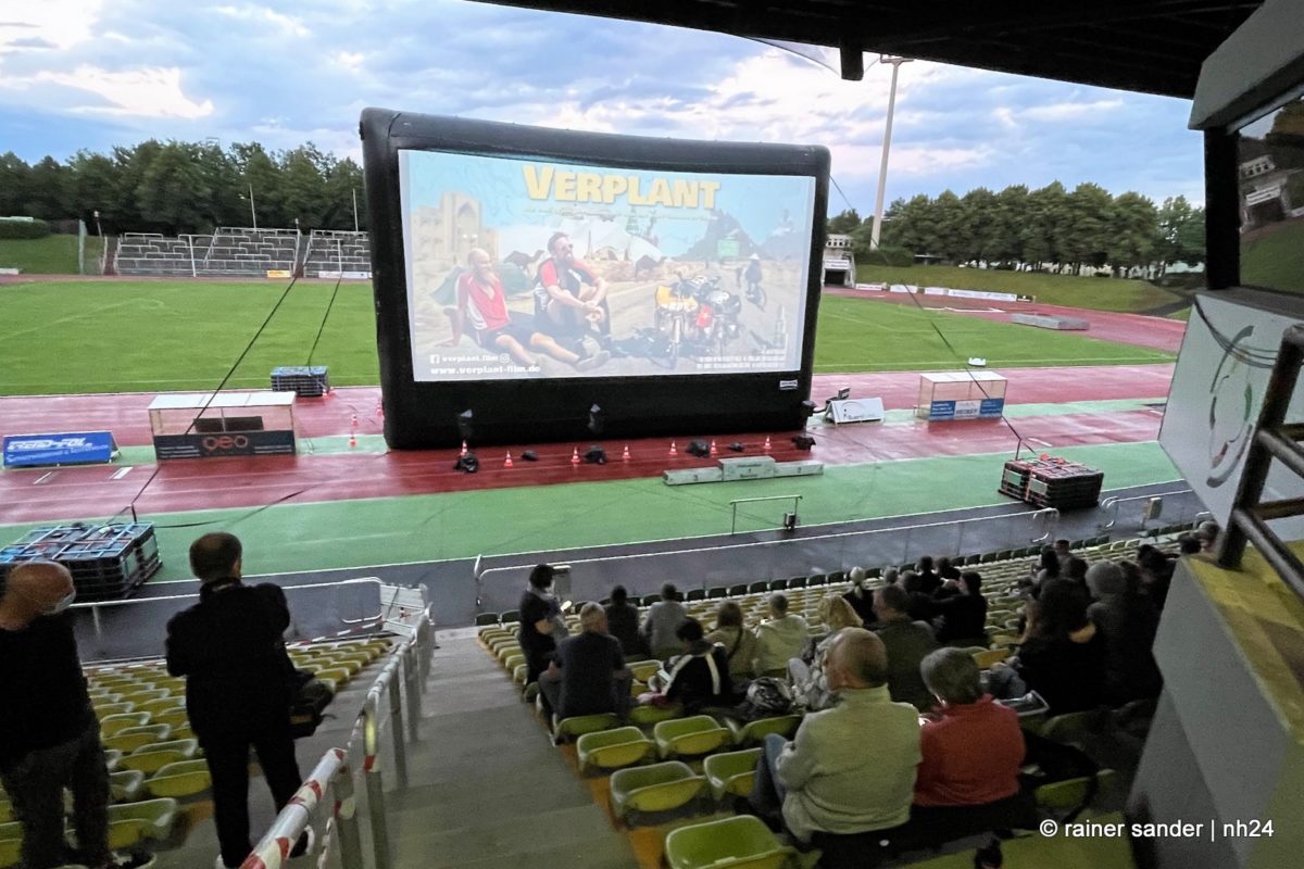 Silke Engler fasste die allgemeine Stimmungslage mit den Worten zusammen „Corona nervt“ und kokettierte ein wenig mit dem Baunataler Ruf, als Sportstadt nicht unbedingt auch als Kulturstadt zu gelten. Dann passt es ja, die Kultur ins Sportstadion zu bringen, mit einem nordhessischen Film, denn Waldemar Schleicher lebt in Kassel und hat hier den Film hier hier geschnitten. Wolfgang Schäfer, Betreiber der Cineplex Kinos in Kassel und Baunatal freute sich, nicht mit einem Blockbuster, sondern einem Film für das klassische Programm-Kino, die Open Air-Saison zu eröffnen.