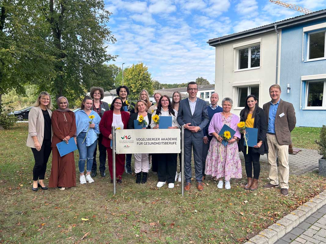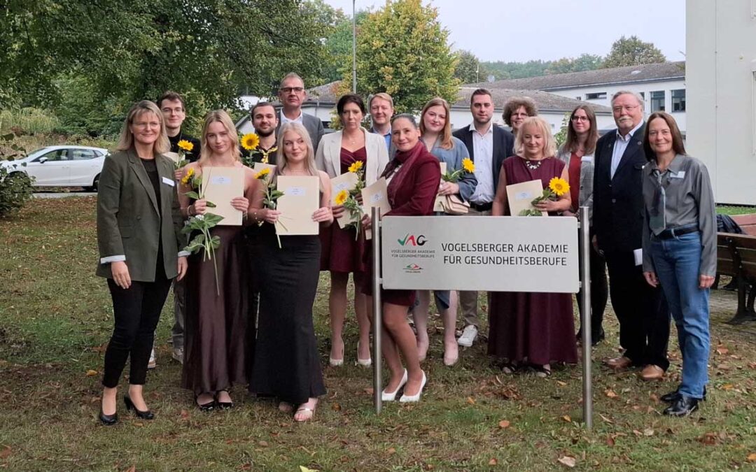 ALSFELD. An der Vogelsberger Akademie für Gesundheitsberufe (VAG) wurden kürzlich die Teilnehmer von drei Kurse feierlich verabschiedet. Am Vormittag erhielten acht Absolventinnen und Absolventen nach dreijähriger Ausbildung ihre Zeugnisse als examinierte Pflegefachkräfte, am Nachmittag folgten 21 Altenpflege- und Krankenpflegehelferinnen und -helfer nach einjähriger Ausbildung.