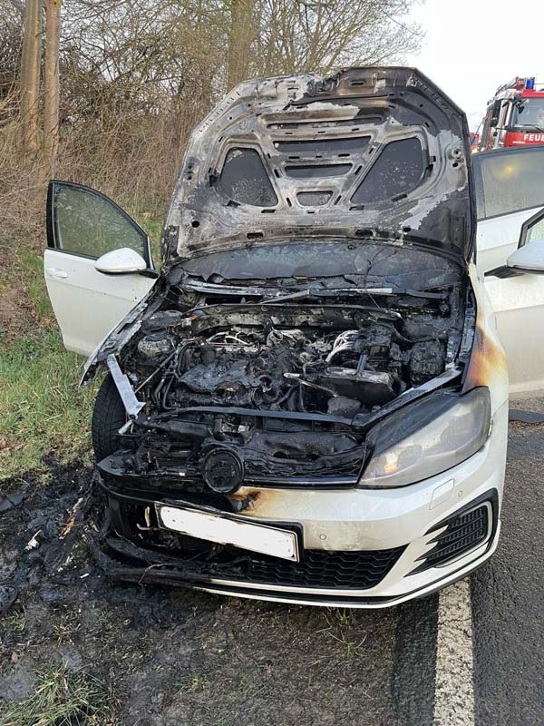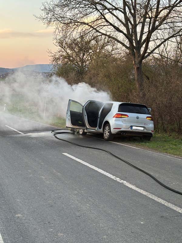 GUDENSBERG. Am frühen Mittwochabend geriet in Gudensberg ein Volkswagen während der Fahrt mutmaßlich aufgrund eines technischen Defekts in Brand. Der 31-jährige Fahrer aus Edermünde konnte das Fahrzeug unverletzt verlassen, informiert Yvonne Völske von der Feuerwehr Gudensberg.