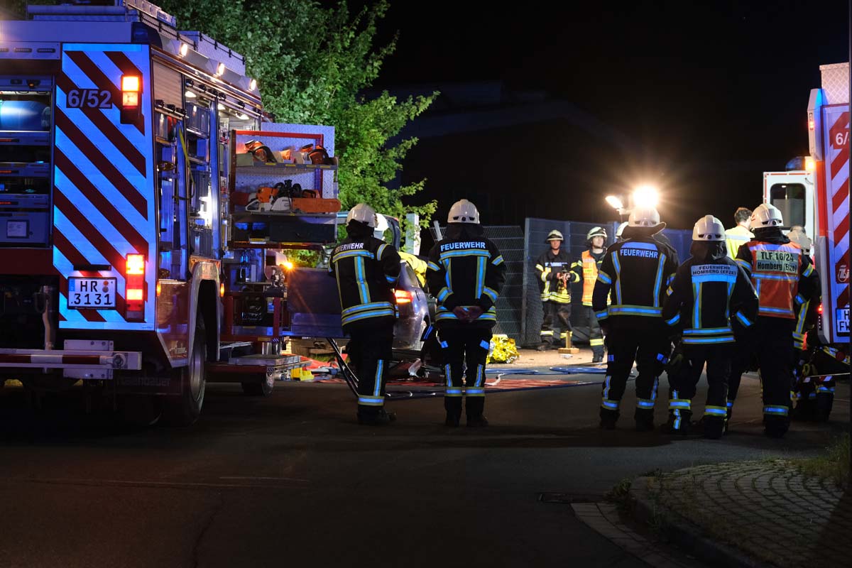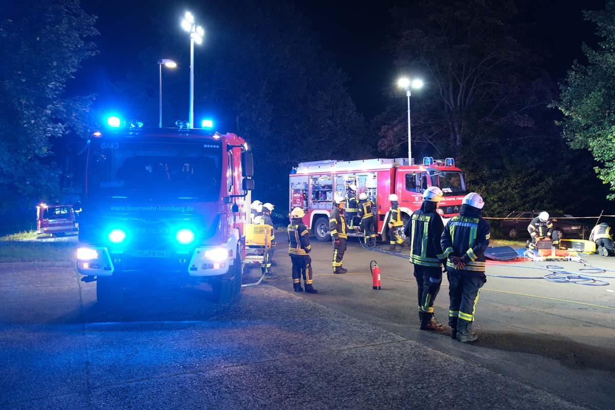 Vor Ort waren zwei Rettungs- und zwei Notarztteams des DRK, 24 Homberger Feuerwehrleute unter der Leitung des stellvertretenden Wehrführers Andreas Paul, die beiden Stadtbrandinspektoren Jörg Rohde und Karsten Stein sowie eine Streifenwagenbesatzung der Polizeistation Homberg.