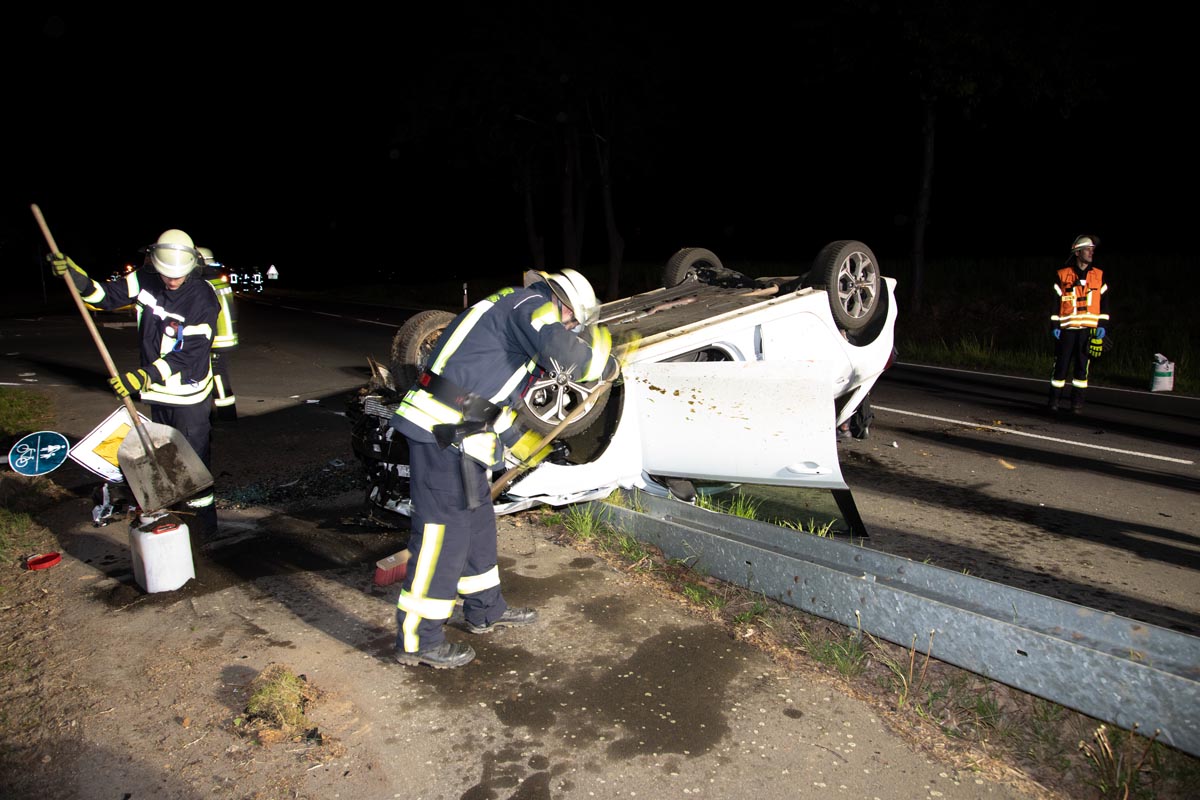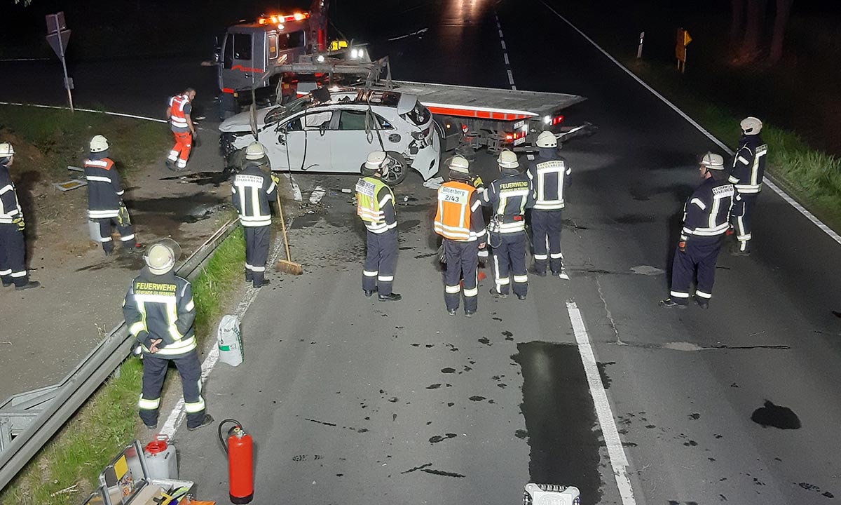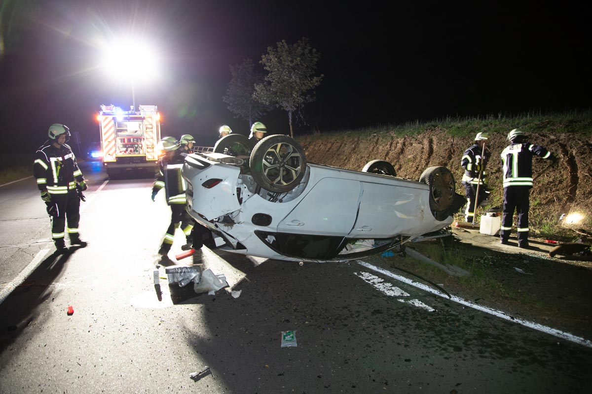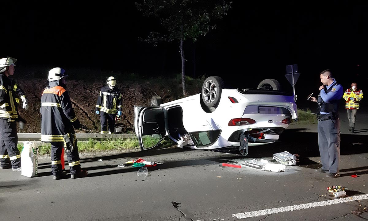 Der Unfall ereignete sich gegen 0:15 Uhr in Höhe des Abzweigs nach Itzenhain. Der 28-jährige Gilserberger war in Richtung Treysa unterwegs als kurz vor dem Abzweig nach Itzenhain der Rehbock auftauchte. Das Auto prallte mit dem Tier zusammen. In der Folge verlor der Fahrer die Kontrolle über seinen Kia-Kombi, stellte sich quer und überschlug sich. Der Rehbock wurde mitgeschleift und verendete hinter der Leitplanke, an der der Pkw zum Liegen kam. Ersthelfer kümmerten sich um den Schwerverletzten und alarmierten die Rettungskräfte.