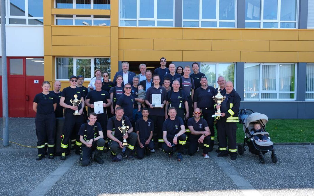 Der Dr.-Walter-Lübcke-Wanderpokal und der Pokal für den Sieg bei der diesjährigen Feuerwehrleistungsübung auf dem Gelände der Carl-Bantzer-Schule (CBS) in Schwalmstadt-Ziegenhain gingen am Samstagmittag an die Feuerwehr Körle. Deren Mannschaft hatte sich offenbar am besten auf die neuen Wettkampfbedingungen eingestellt und erreichte 99 Prozent. Auf den Plätzen zwei und drei folgten die Teams aus Guxhagen (98,6 Prozent) und Wabern (97,9 Prozent).
