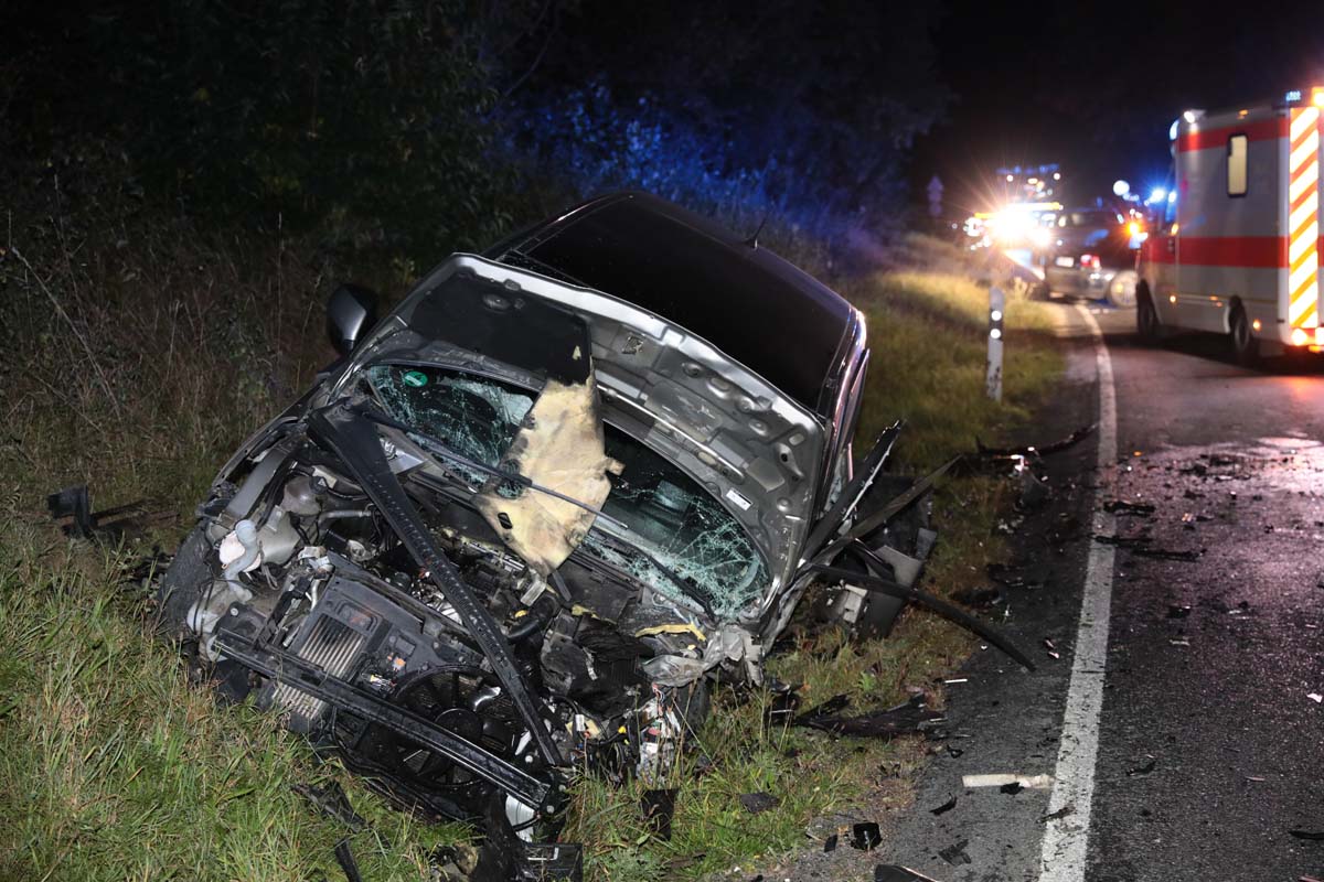 SCHWALMSTADT / WILLINGSHAUSEN. Am späten Dienstagabend kam es zu einer heftigen Kollision auf der Landesstraße zwischen Schwalmstadt-Treysa und Willingshausen-Wasenberg im Schwalm-Eder-Kreis, bei der zwei Pkw frontal zusammenstießen.