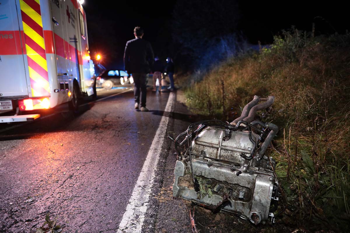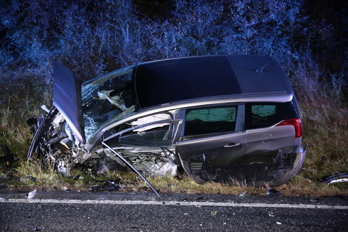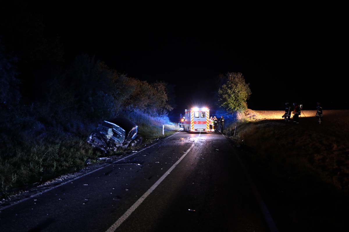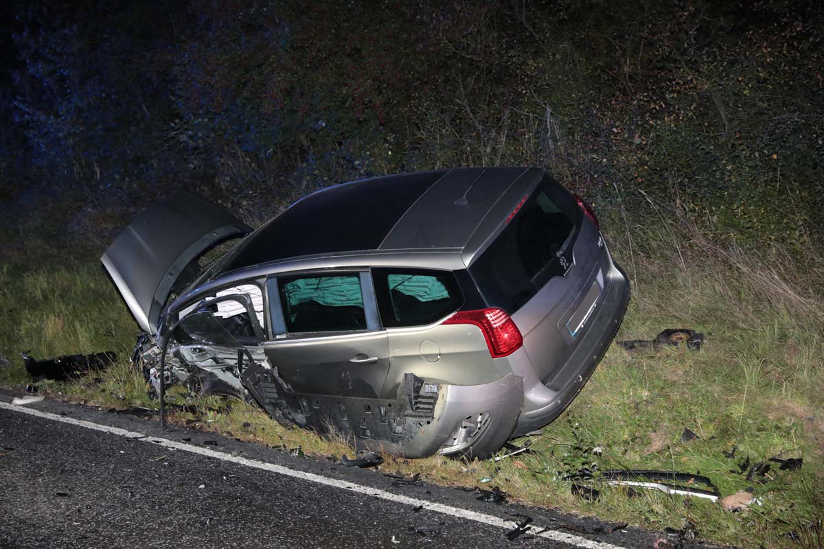 Die genauen Umstände dieses Unfalls sind bislang noch ungeklärt. Augenscheinlich prallten im Kurvenbereich zwei entgegenkommenden Fahrzeuge mit hoher Wucht zusammen. Ein Peugeot, vermutlich auf dem Weg nach Treysa, geriet von der Straße ab und kam in der Böschung zum Stillstand. Dem entgegenkommenden Audi A3 wurde während des Zusammenpralls der Motorblock aus dem Fahrzeug gerissen, Trümmerteile und Betriebsflüssigkeiten verteilten sich großflächig an der Unfallstelle. Der Mitfahrer erlitt schwere Verletzungen und wurde nach seiner Erstversorgung an der Unfallstelle in eine Klinik geflogen.