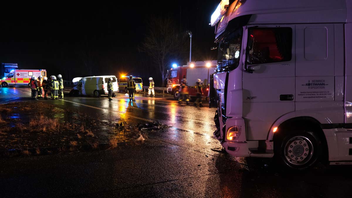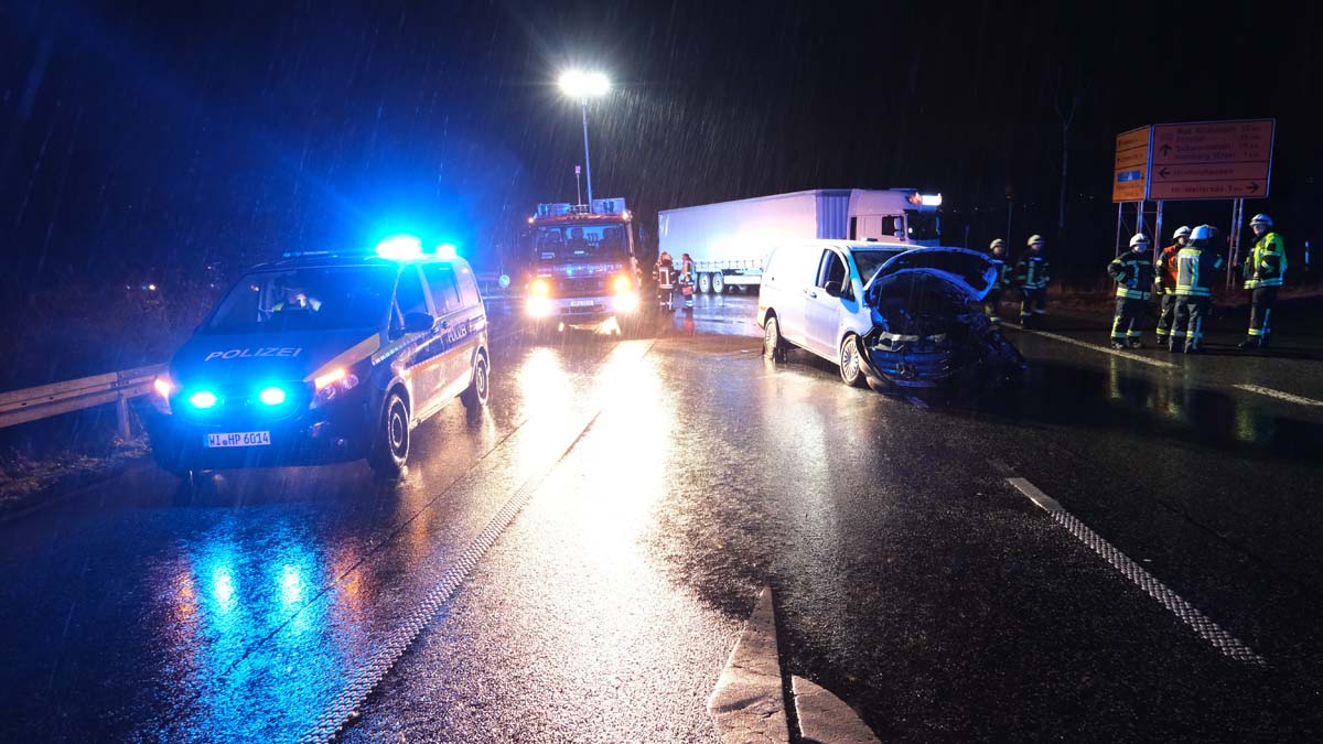 Die Bundesstraße war während der Rettungsmaßnahmen voll gesperrt. Der vollkommen zerstörte Mercedes Vito (40.000 EUR Schaden) musste abgeschleppt werden. Der Sattelzug (25.000 EUR Schaden) konnte oberhalb von Holzhausen abgestellt werden. (wal)