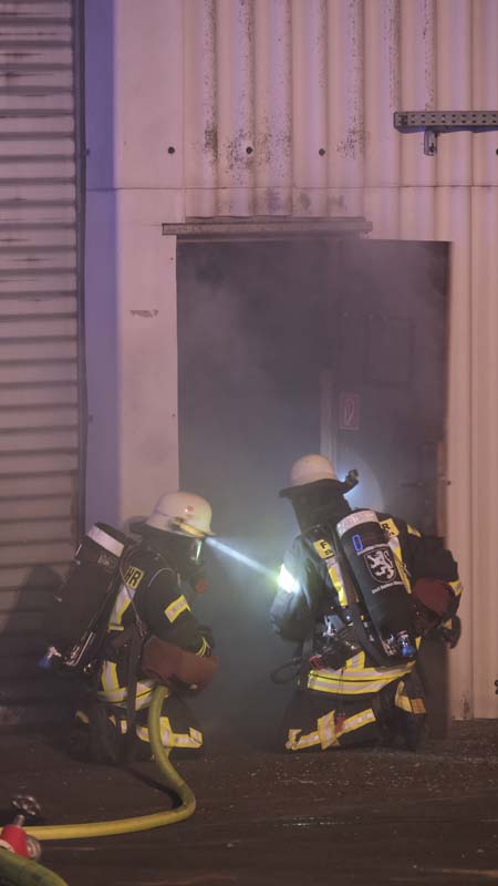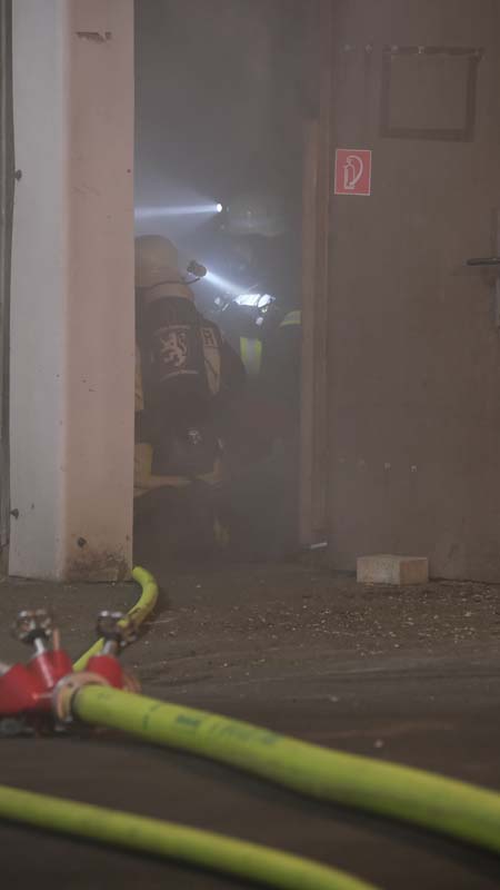 Mit dem Eintreffen der ersten Einsatzkräfte unter der Führung von Einsatzleiter Timo Heyen verdichtete sich das Szenario. Starke Rauchschwaden, die aus den Fugen des Gebäudes drangen, und der Bericht eines Mitarbeiters über drei vermisste Personen setzten den Rahmen für eine anspruchsvolle Rettungsmission. Die einzige Tür auf der östlichen Seite des Gebäudes diente als kritischer Zugangspunkt, durch den sich mehrere Atemschutztrupps vorsichtig vorwärts tasteten, um die Vermissten zu lokalisieren.