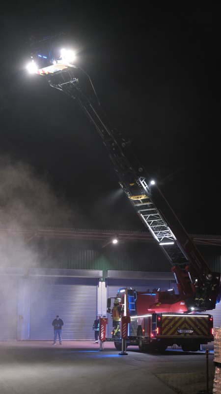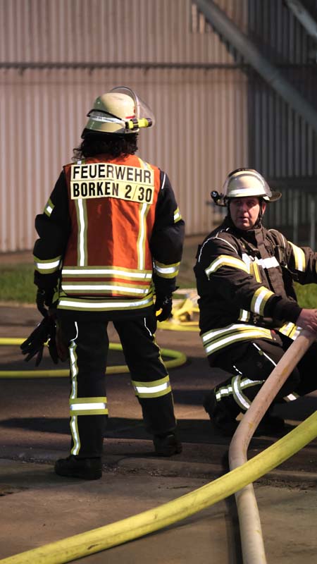 Zielobjekt der Übung am Dienstagabend war das weitläufige Gelände der Raiffeisen Waren in Borken, genauer die Halle des Getreidelagers. Entworfen von Marco Bräutigam, simulierte das Szenario einen Brand mit drei vermissten Personen in einem stark verrauchten Umfeld, das die Sichtweite drastisch reduzierte.