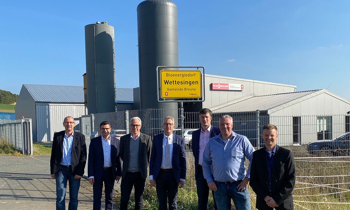Mit dem Breunaer Ortsteil Wettesingen besuchte Regierungspräsident Klüber das deutschlandweit erste Dorf, das seinen Wärmebedarf vollständig aus erneuerbaren Energien deckt. An dem Austausch zur Energiewende nahmen Breunas Bürgermeister Jens Wiegand und Professor Peter Birkner vom House of Energy teil. Für das Unternehmen Viessmann, das die technische Infrastruktur in Wettesingen verantwortet, begleiteten der Generalbevollmächtigte Professor Markus Pfuhl sowie Marco Ohme, Projektleiter Bioenergiedörfer und -systeme, den Termin.