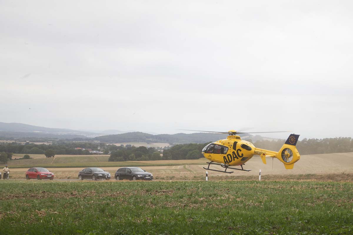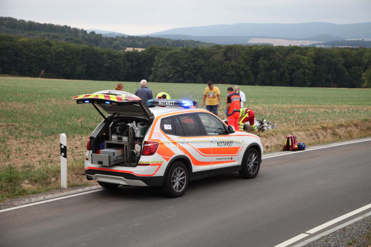 Ersthelfer hielten sofort an, kümmerten sich um den 24-Jährigen und informierten die Rettungskräfte. Nach seiner Erstversorgung durch Voraushelfer des DRKs, ein DRK-Rettungsteam und einen Homberger Notarzt, flog ihn die Besatzung des Rettungshubschraubers in ein Kasseler Krankenhaus. Sie erlittenen Verletzungen sind schwer, aber höchstwahrscheinlich nicht lebensbedrohlich.