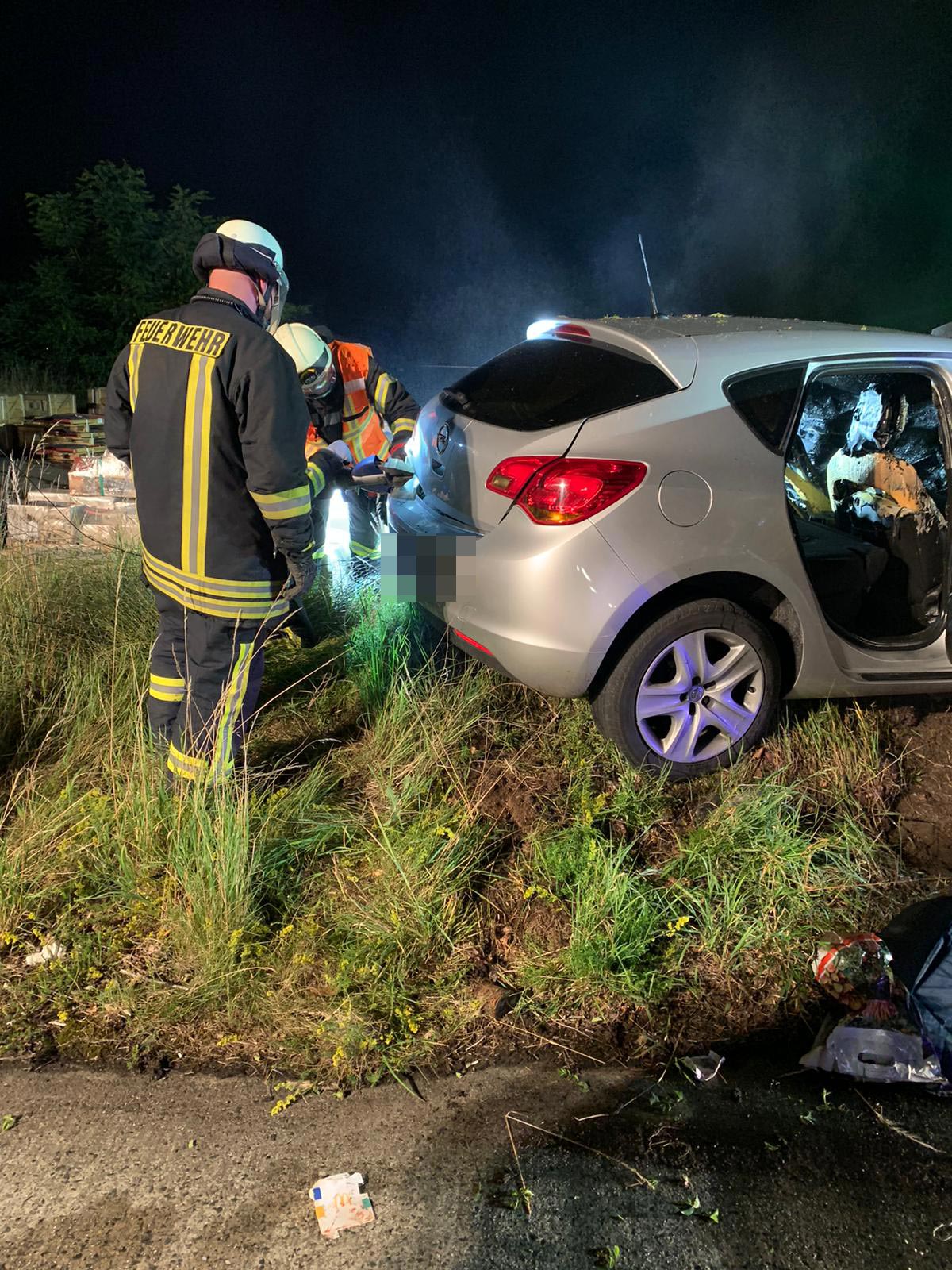 Beim Ausweichen des Tieres verlor der 18-Jährige die Kontrolle über das Fahrzeug. Er geriet von der Fahrbahn ab und durchbrach den Zaun einer Firma. Aus dem Fahrzeug konnte sich der junge Mann noch selbstständig retten. Wenige Augenblicke später schlugen Flammen aus dem Motorraum des Opels.