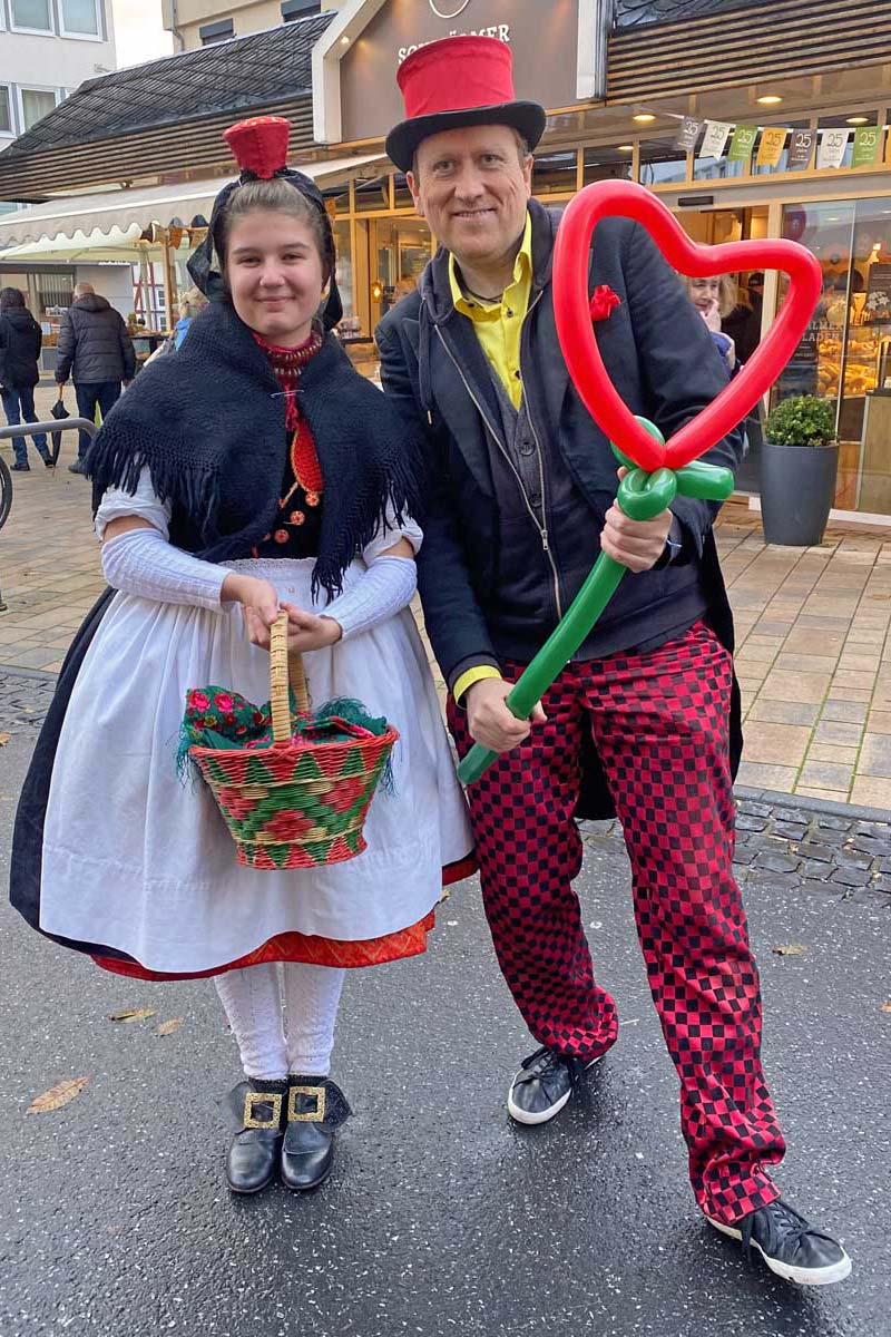Musikalisch begleitet wird der Nachmittag von „Love On The Rocks“ mit Gerhard „Mac“ Wiebe (Gitarre, Saxophon) und Barbara Wiebe, Studentin an der Frankfurter Jazzakademie. Für Unterhaltung sorgen zudem „The Phantasy“ mit beeindruckender Seifenblasen-Kunst sowie das Künstlerduo Noemi de Swart und Muss Musculus (Malou Lehner), das Rotkäppchen und „böser Wolf“ verkörpert und das Märchenthema des Tages aufgreift.