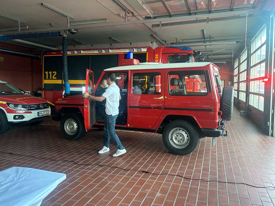 Für besondere Aufmerksamkeit sorgte die Rückkehr des alten Kommandowagens. Vereinsvorsitzender Geißler wurde am frühen Abend mit der Leihgabe von Wehrführer Marcel Ochs im historischen Fahrzeug in die Fahrzeughalle gefahren. Der Wagen war vor einiger Zeit durch einen VW Tiguan ersetzt worden. Ein Hinweis von Dekan Christian Wachter führte schließlich zur Wiederentdeckung des Mercedes in Nürnberg.