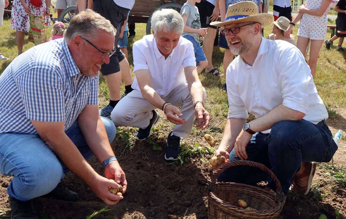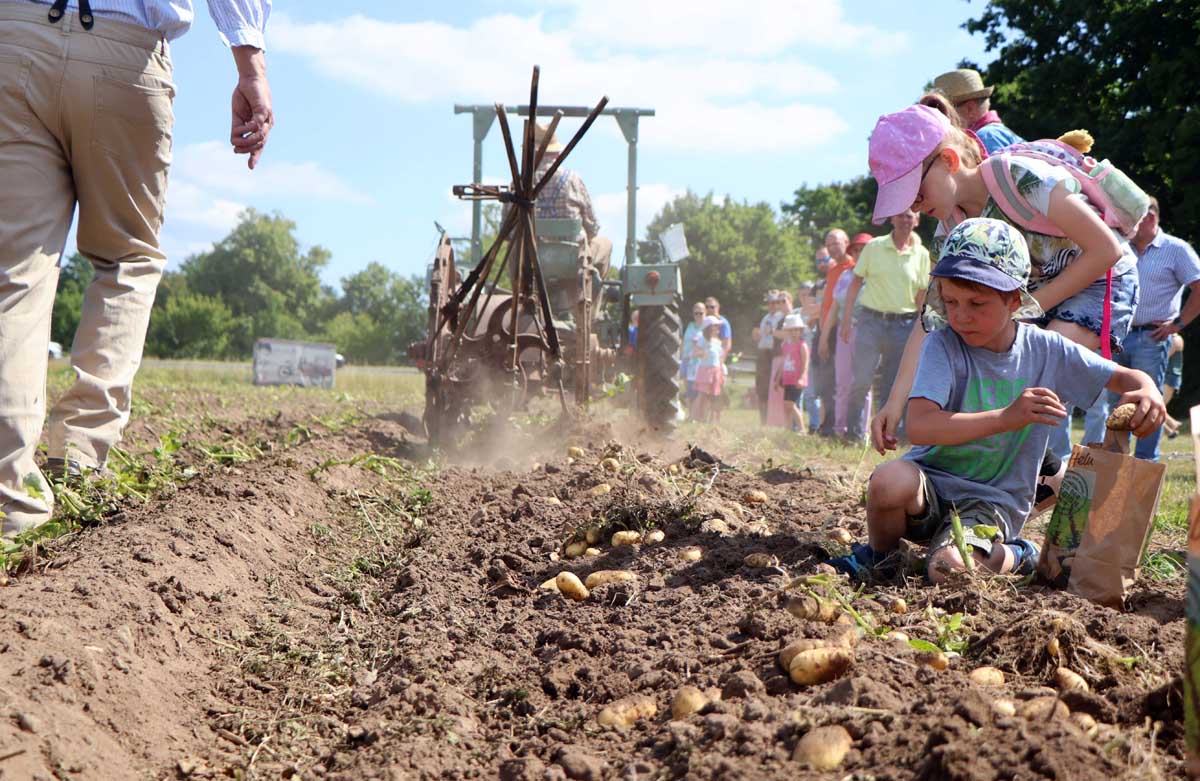 Ein besonderes Glanzlicht an dem Tag: Ein Kartoffelfeld, das mit historischer Landtechnik von der Interessengemeinschaft „Zugpferde“ und den Landtechnikfreunden Niederwalgern beerntet wurde. Kinder und Erwachsene nutzen anschließend rege die Möglichkeit, die Kartoffeln zu lesen. Für das leibliche Wohl war durch zahlreiche heimische Anbieterinnen und Anbieter sowie Produzentinnen und Produzenten gesorgt – passend zu den sommerlichen Temperaturen war auch Speiseeis dabei.