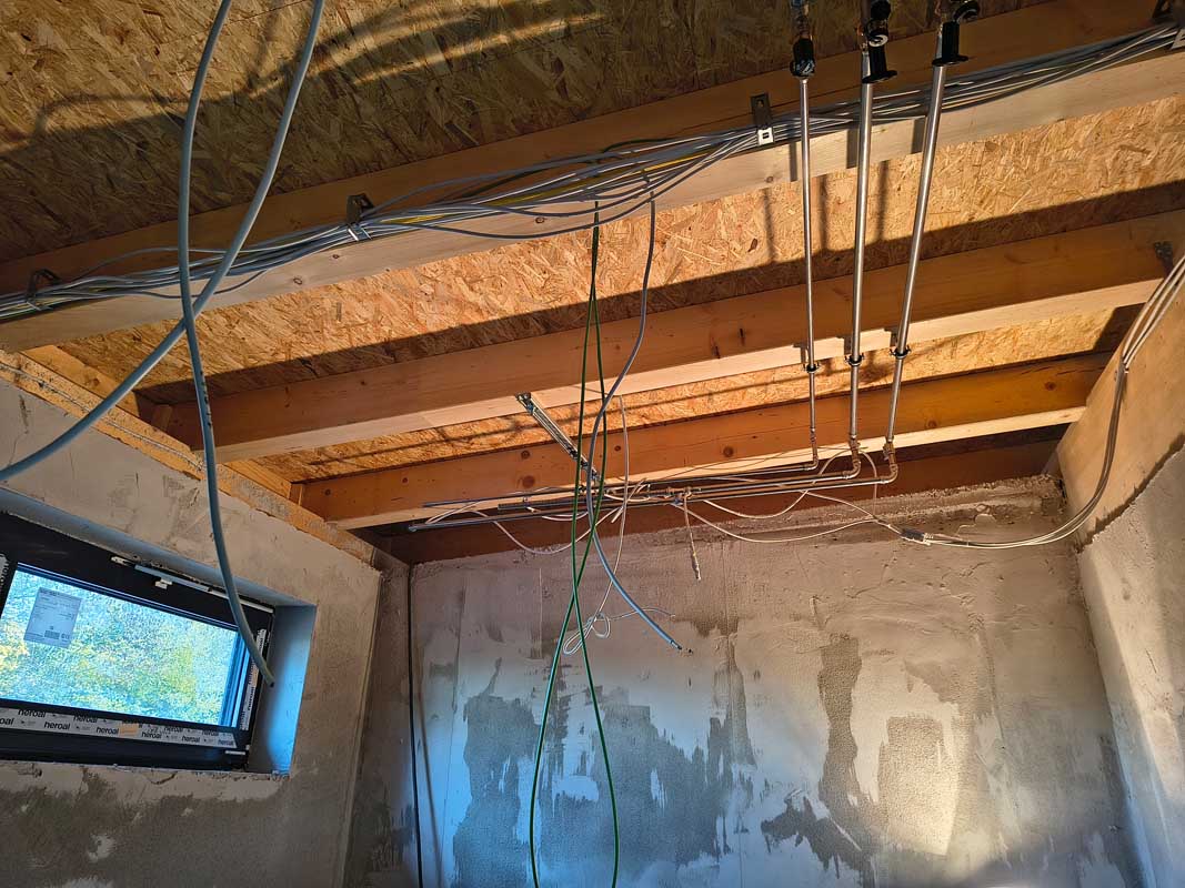 Im Umkleidegebäude werden derzeit in den Technik- und Umkleideräumen die Systeme für die Wärmetechnik installiert. In den kommenden Tagen folgt die Montage der PVT-Anlage auf dem Dach. Die entsprechenden Module sind bereits angeliefert und liegen bereit.