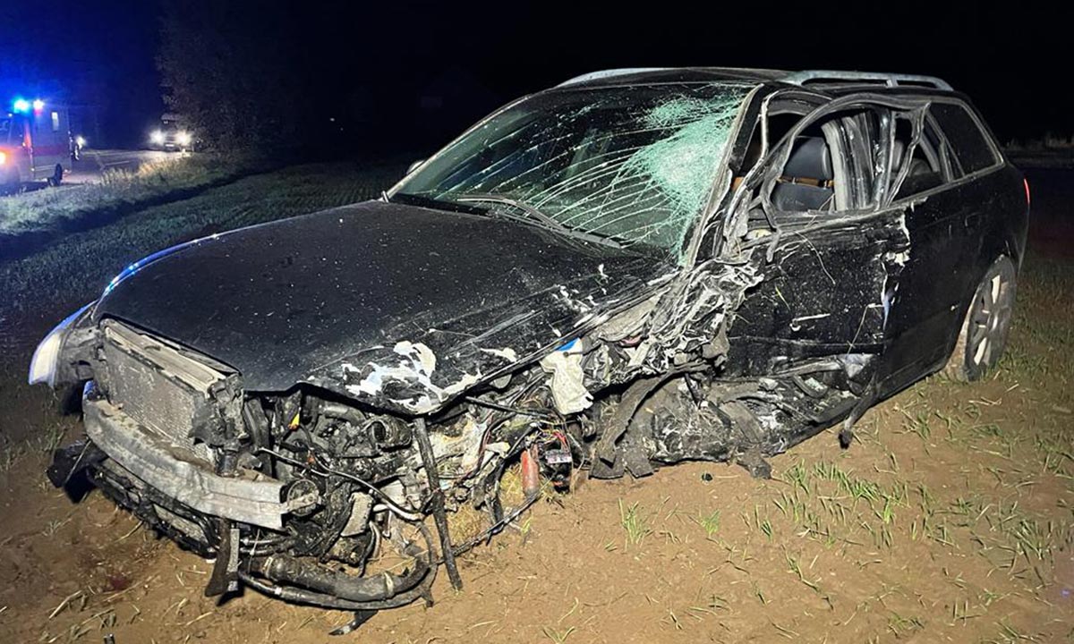 Der Audi des Unfallverursachers schleuderte über die Zufahrt der Baustelleneinfahrt und kam auf einem Acker zum Stillstand. Der entgegenkommende Audi kippte auf die Fahrerseite. Die beiden Männer in dem Fahrzeug erlitten, wie der Unfallverursacher, eher leichte Verletzungen. Der 70-Jährige aus Feldatal brachte sein Gespann auf dem Grünstreifen zum Stillstand und blieb unverletzt.