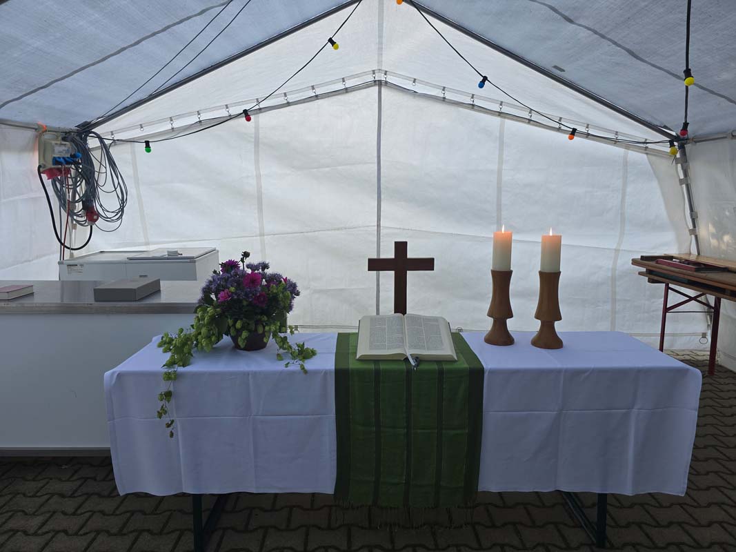 Am Sonntagmorgen feierten die Besucher einen festlichen Gottesdienst im Festzelt, musikalisch begleitet vom Posaunenchor. Im Anschluss standen das Schießen der Vereinsvorstände sowie Pokalwettbewerbe für alle Interessierten, Jugendliche und Schüler auf dem Programm.