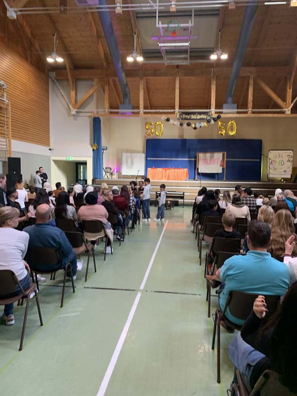 Die Schüler waren stolz auf ihre Auftritte. Der Abend begann mit dem Chor der Jahrgangsstufe 6 unter der Leitung von Michael Bauer, gefolgt von der Theatergruppe WP 8/9 von Frau Kurz, die eine Talentshow präsentierte. Der Beatboxer Steve gewann die Herzen des Publikums. Weitere musikalische Beiträge kamen von Max Gebauer am Klavier und einer Hitparade der Jahrgangsstufe 5.
